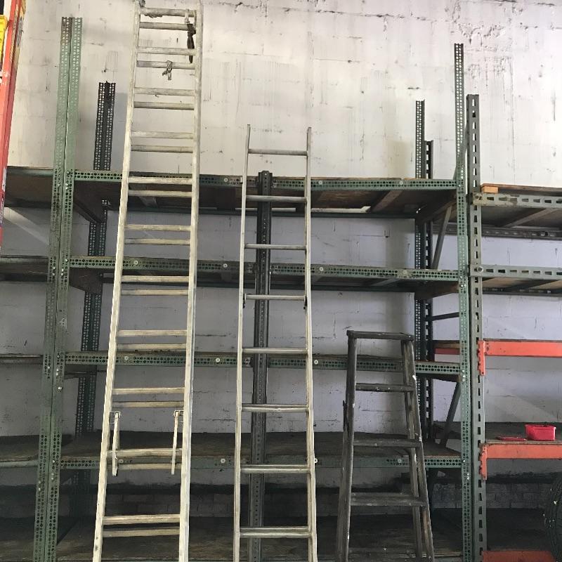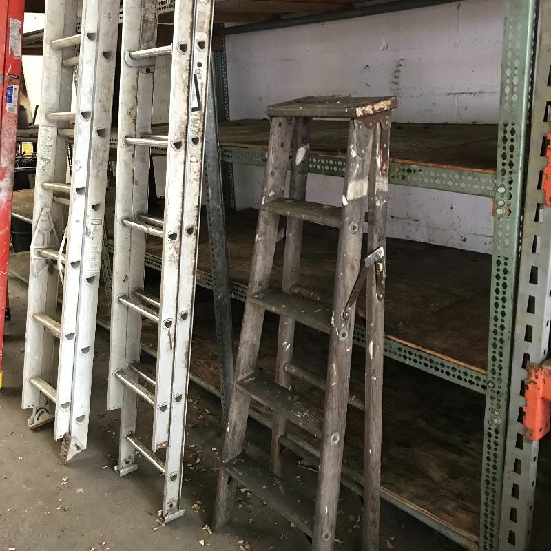Three ladders to help you get where you need to be. Two Werner aluminum extension ladders, one appears to be 24’ and the other 16’, both in working condition. The wooden ladder stands 4’8” and is a little wobbly, practice caution when in use. See photos. Local pick up only.