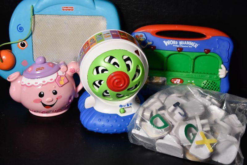 Learning toys for your toddler. Fisher Price and more. Bring box to remove.