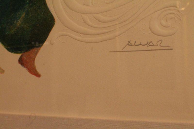 LOT #121: Vintage Large Framed ALVAR SUNOL Embossed Watercolor Fine Art Signed and Numbered