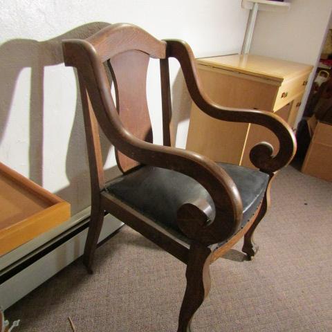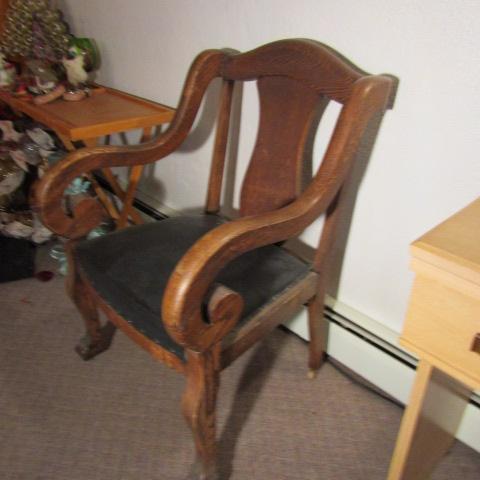 B-29  ANTIQUE ARM CHAIR ON CASTERS