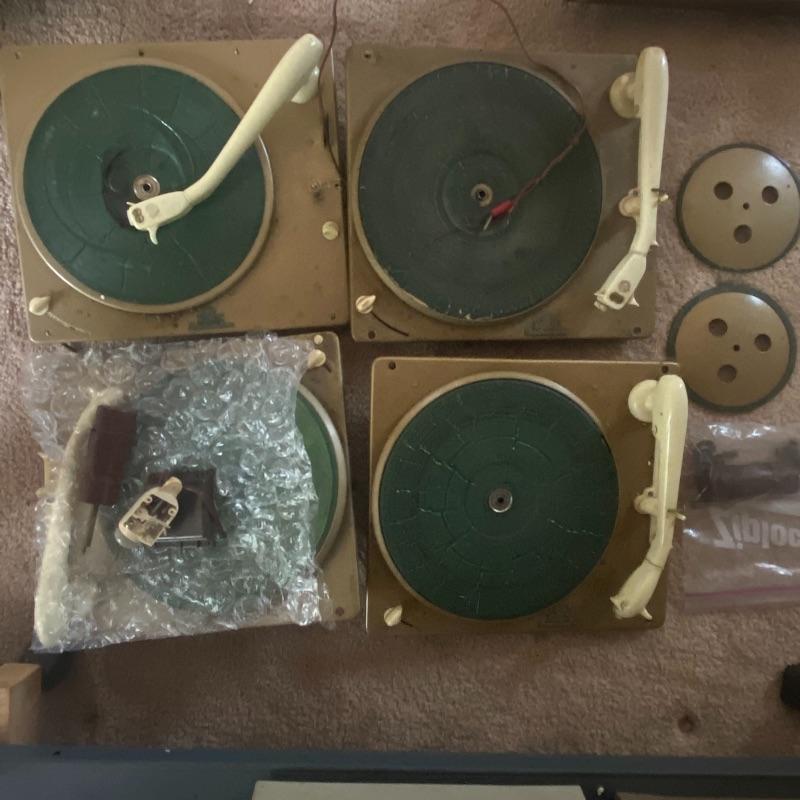 This lot includes five vintage PE turn tables! All five turntables are stand alone tan colored turn tables. Cords included. See photos. Unable to be tested, great for parts and repair jobs!