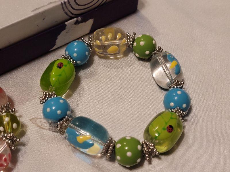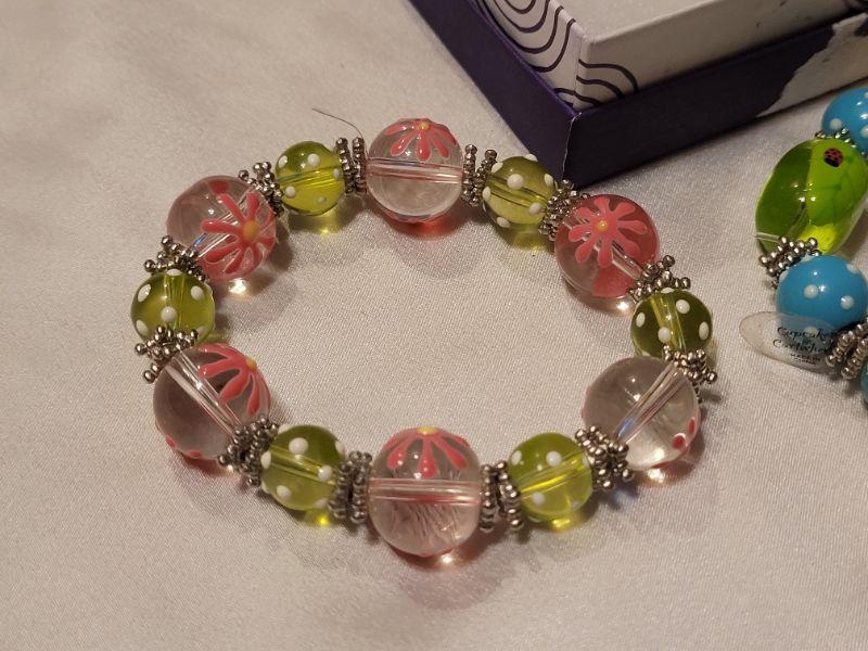 Lot 161: New (2) Handpainted Glass Beaded Bracelets and Mixed Metal Heart Ring