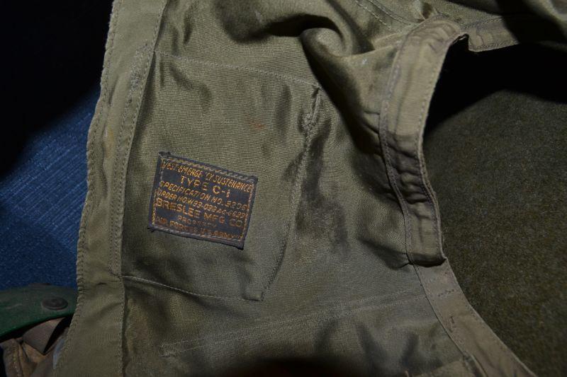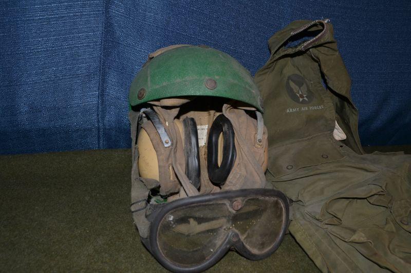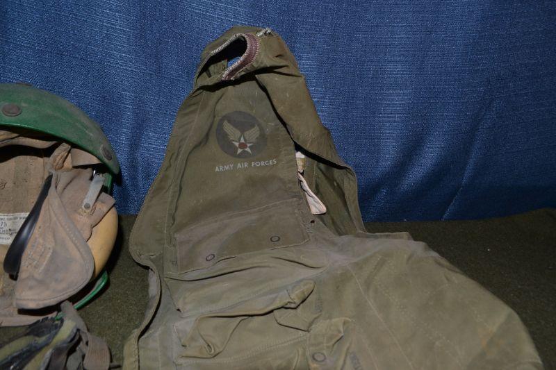 LOT 121 US Army Air Forces WWII Type C-1 Flight Vest & Cloth Flight Crew Helmet