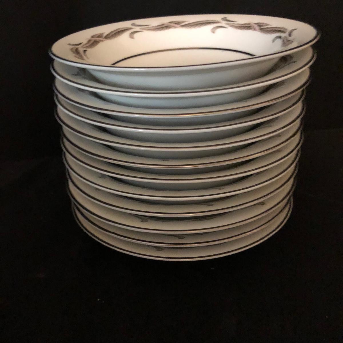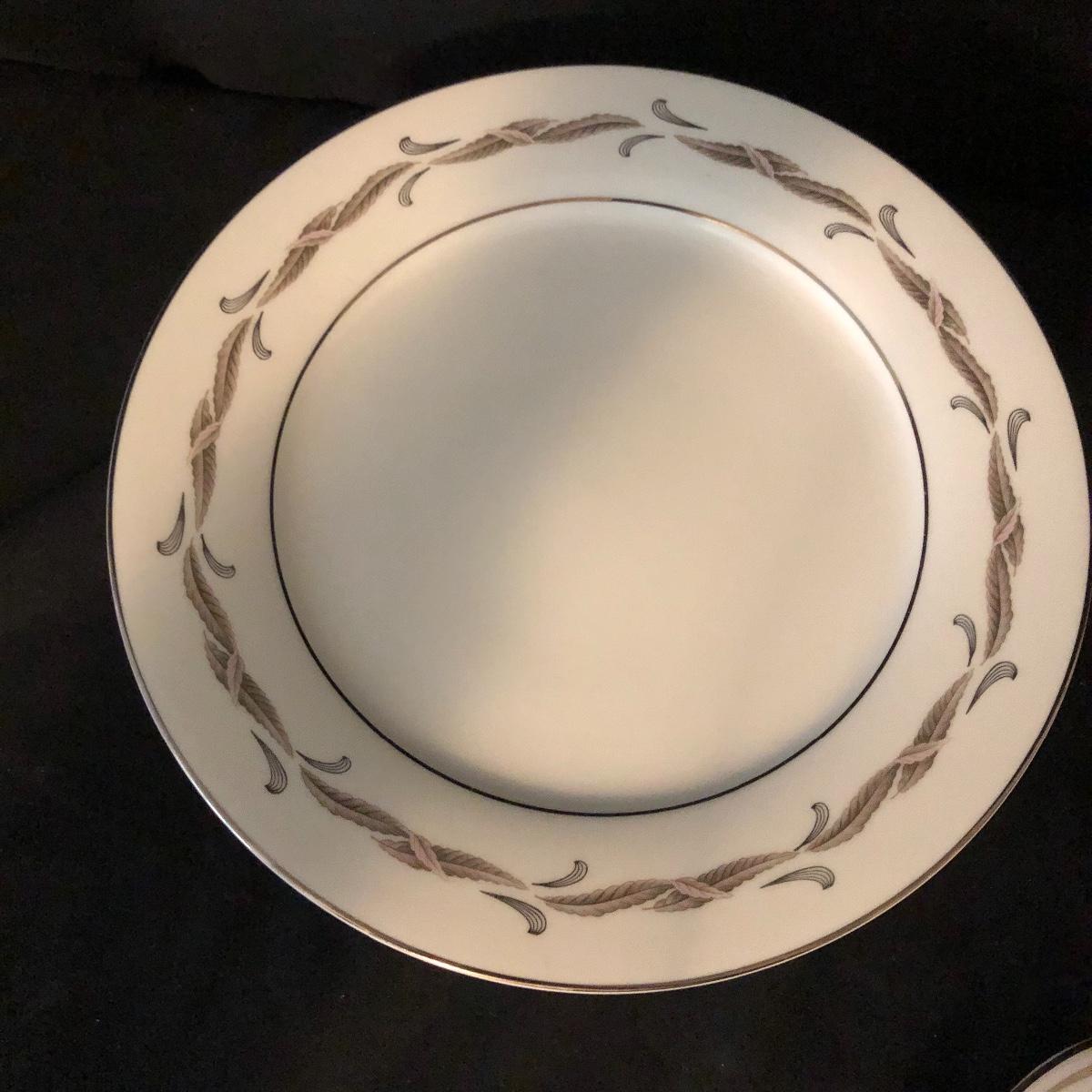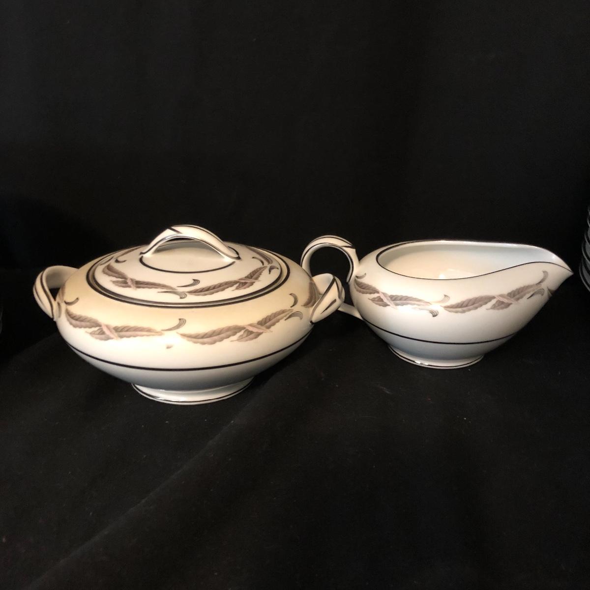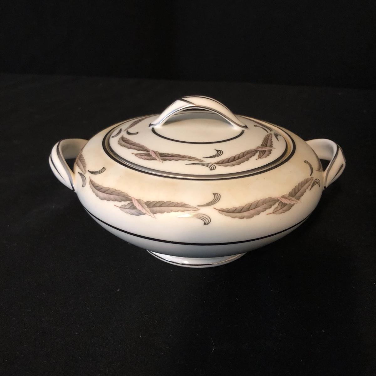 . This seven piece twelve person Noritake China set in the Gaylord pattern includes two serving platters, gravy boat, lidded dish, cream and sugar bowl. Also includes a platter and two serving bowls in the Diana pattern. Largest platter measures 11.5” x 16.5”. Local Pick Up