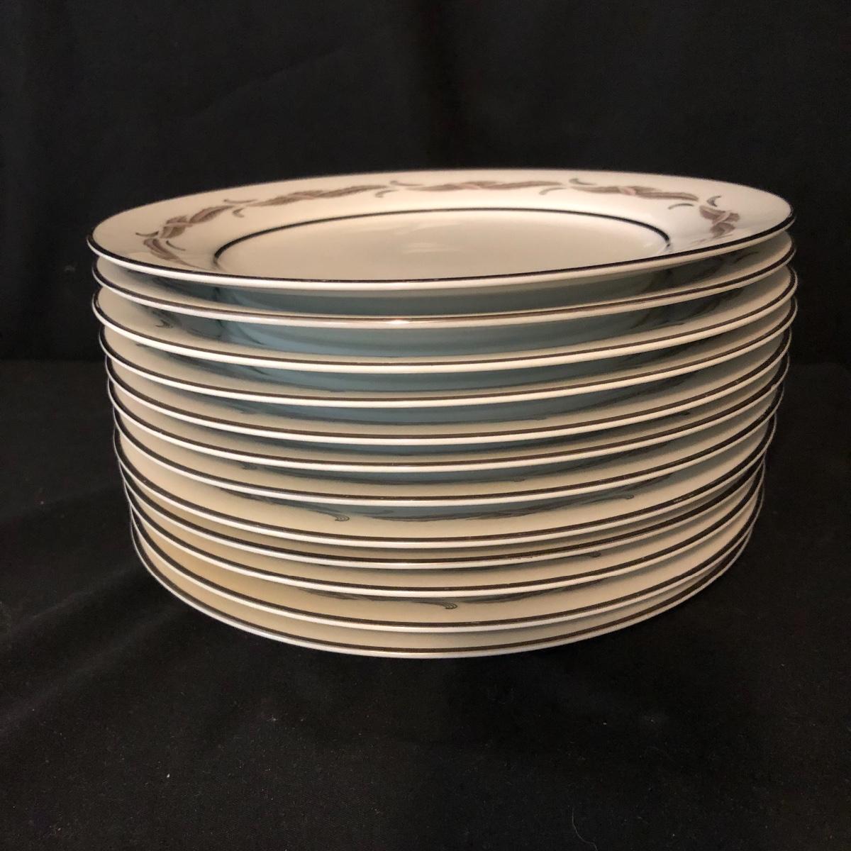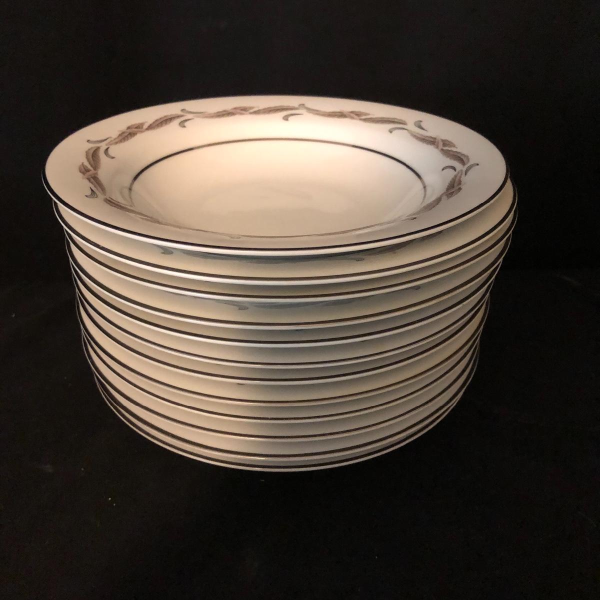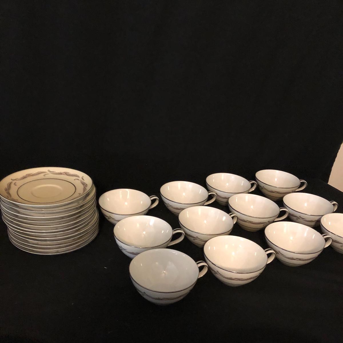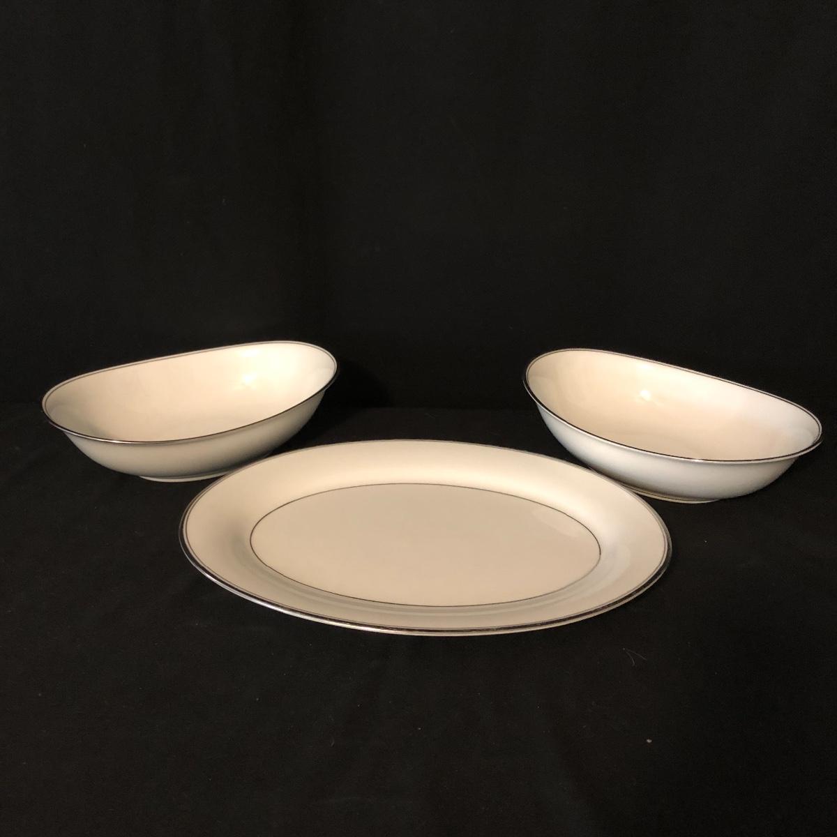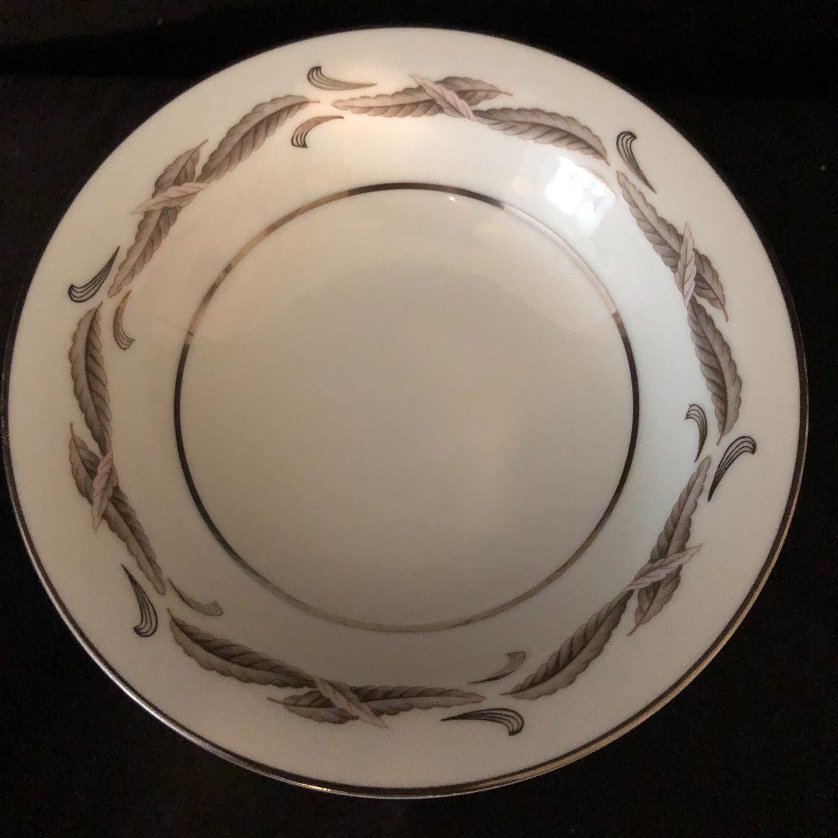 . This seven piece twelve person Noritake China set in the Gaylord pattern includes two serving platters, gravy boat, lidded dish, cream and sugar bowl. Also includes a platter and two serving bowls in the Diana pattern. Largest platter measures 11.5” x 16.5”. Local Pick Up