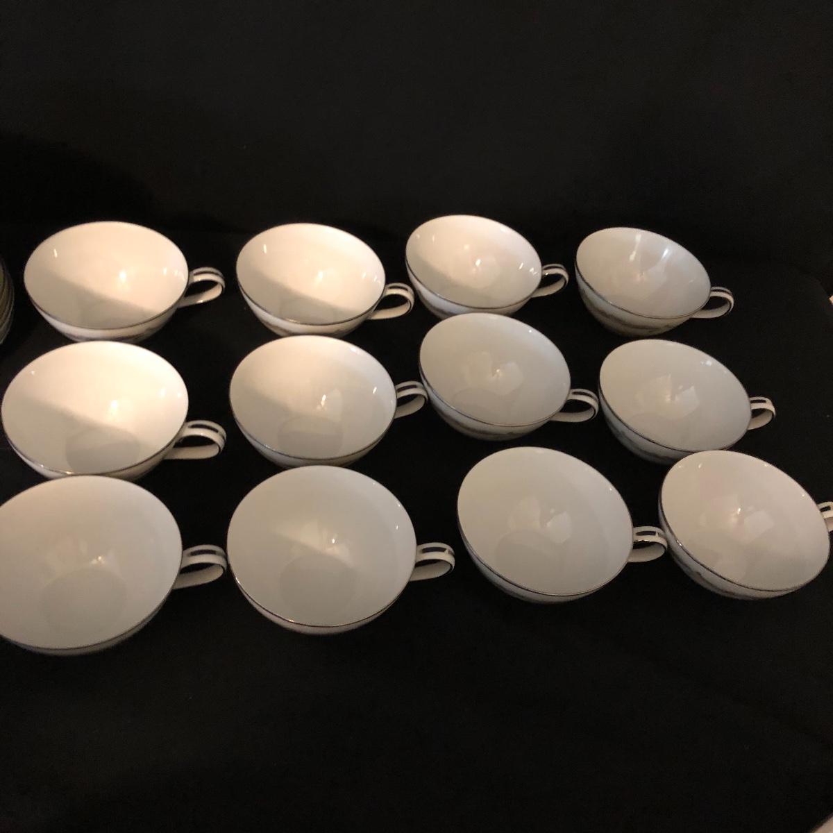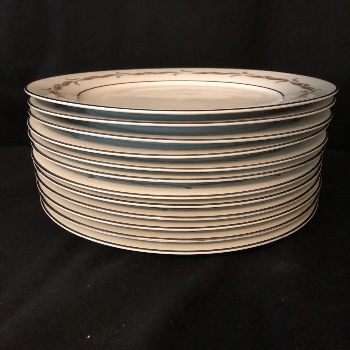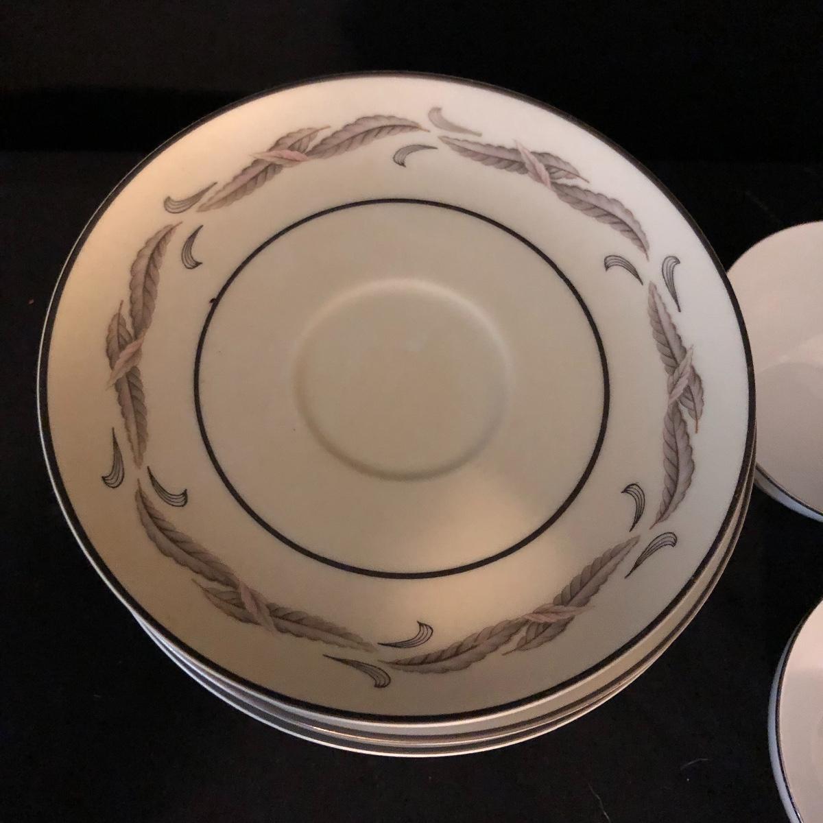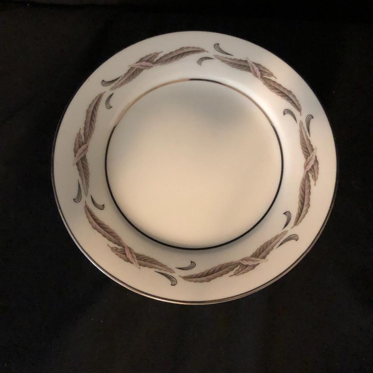 . This seven piece twelve person Noritake China set in the Gaylord pattern includes two serving platters, gravy boat, lidded dish, cream and sugar bowl. Also includes a platter and two serving bowls in the Diana pattern. Largest platter measures 11.5” x 16.5”. Local Pick Up