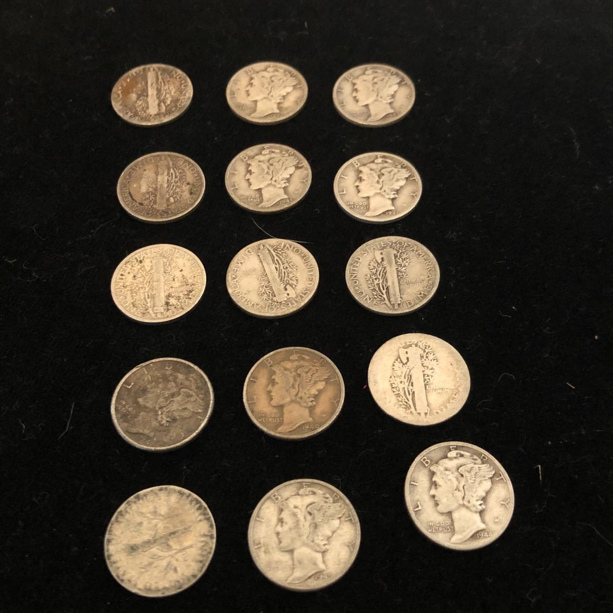 This lot includes fifteen silver dimes and three Dime Saver Books from Canton Savings & Loan Association. Many of the silver dimes are from the early 1940’s with some being older and difficult to discern the year. Shipping Available.