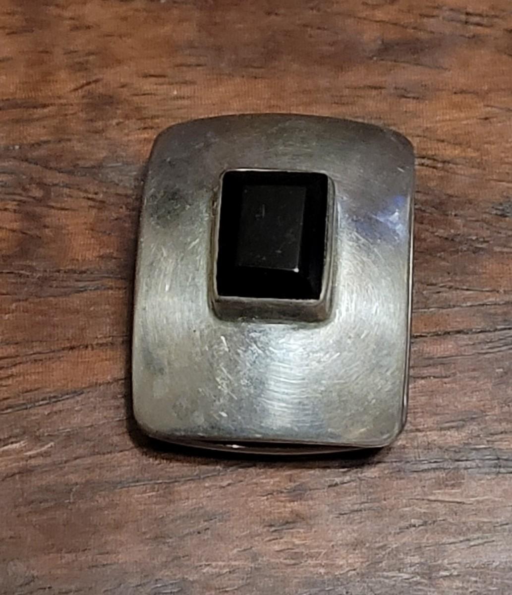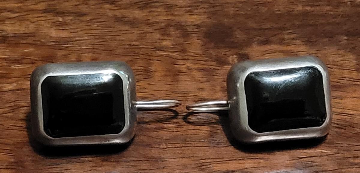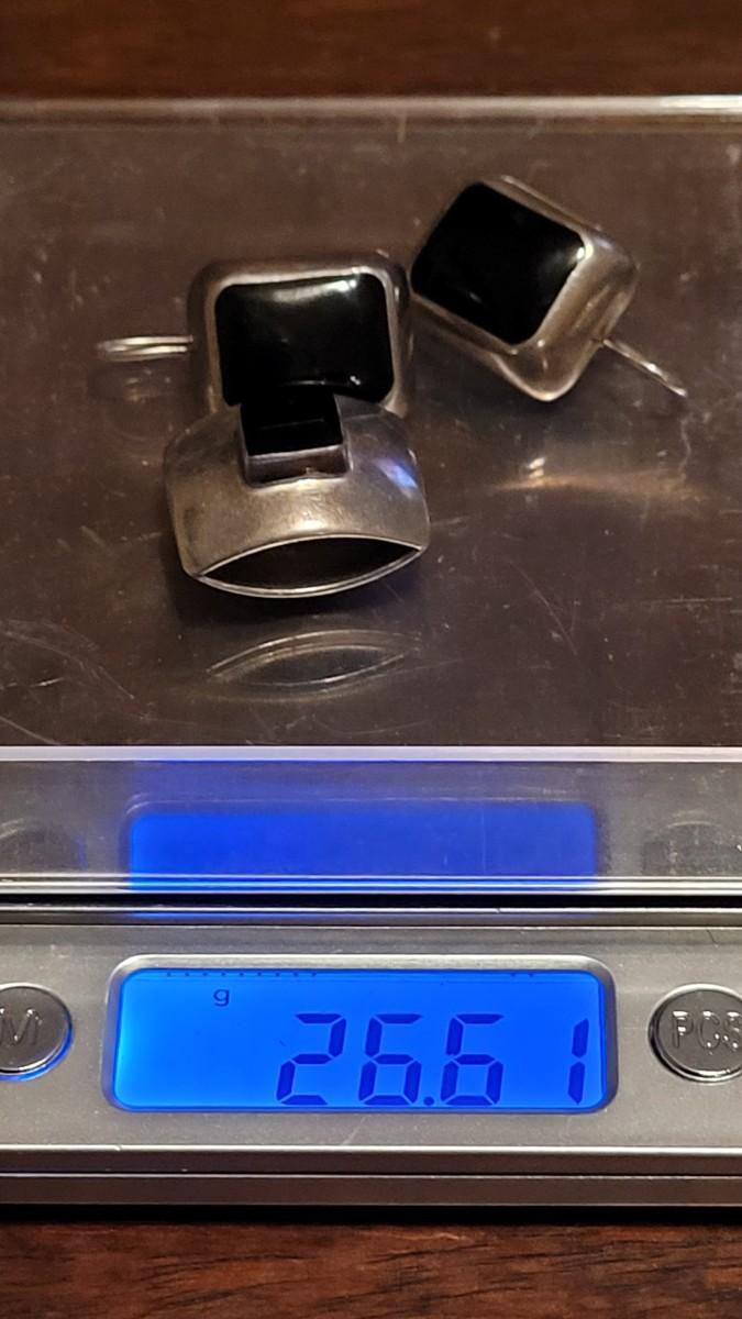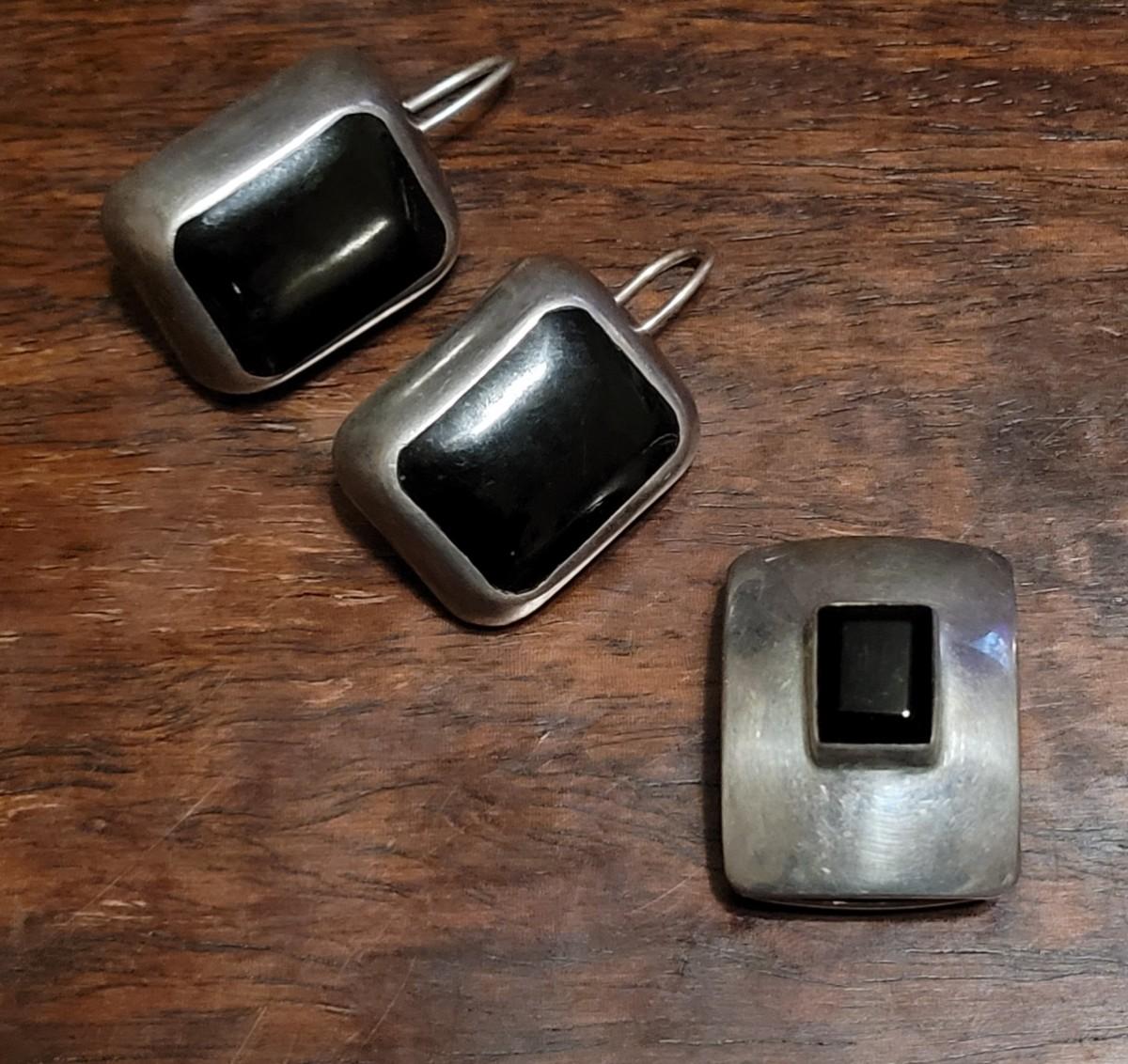 Lot 121: Vintage Sterling & Black Onyx Earrings & Slider Pendant