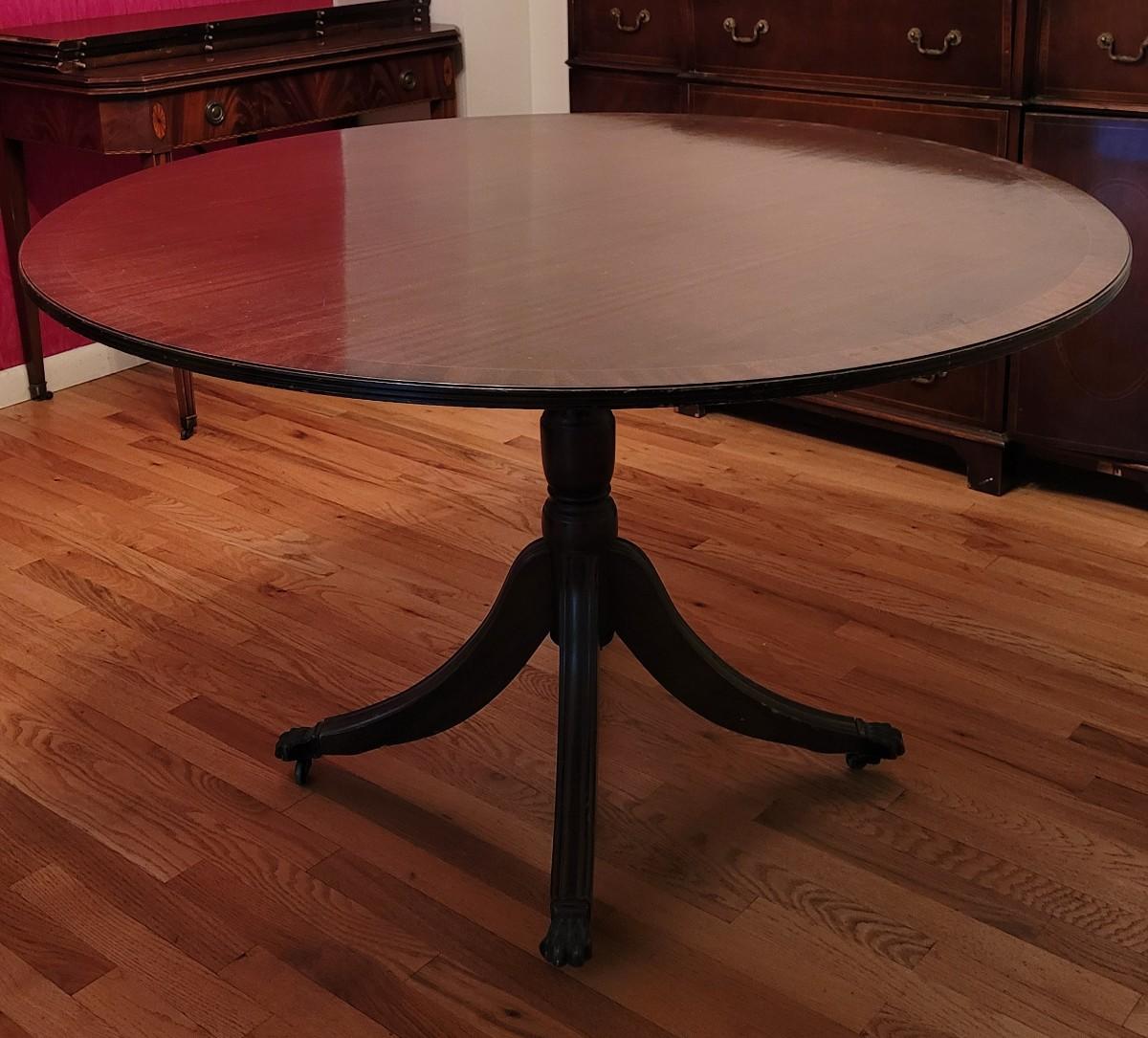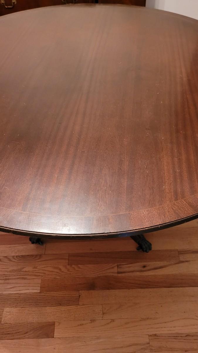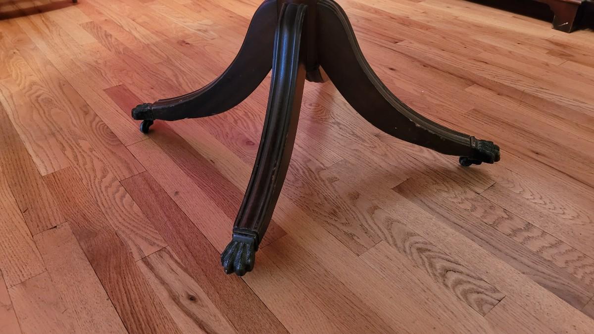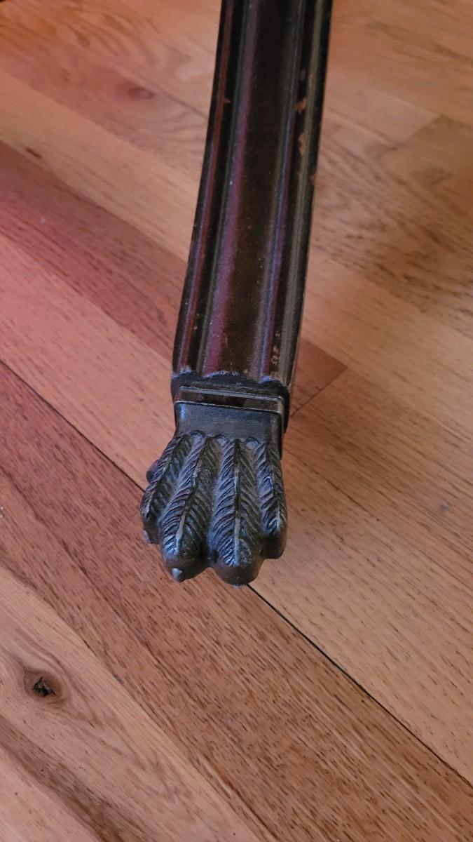 Lot 121: Antique Metal Claw Foot Cherry Table with Inlay Wood