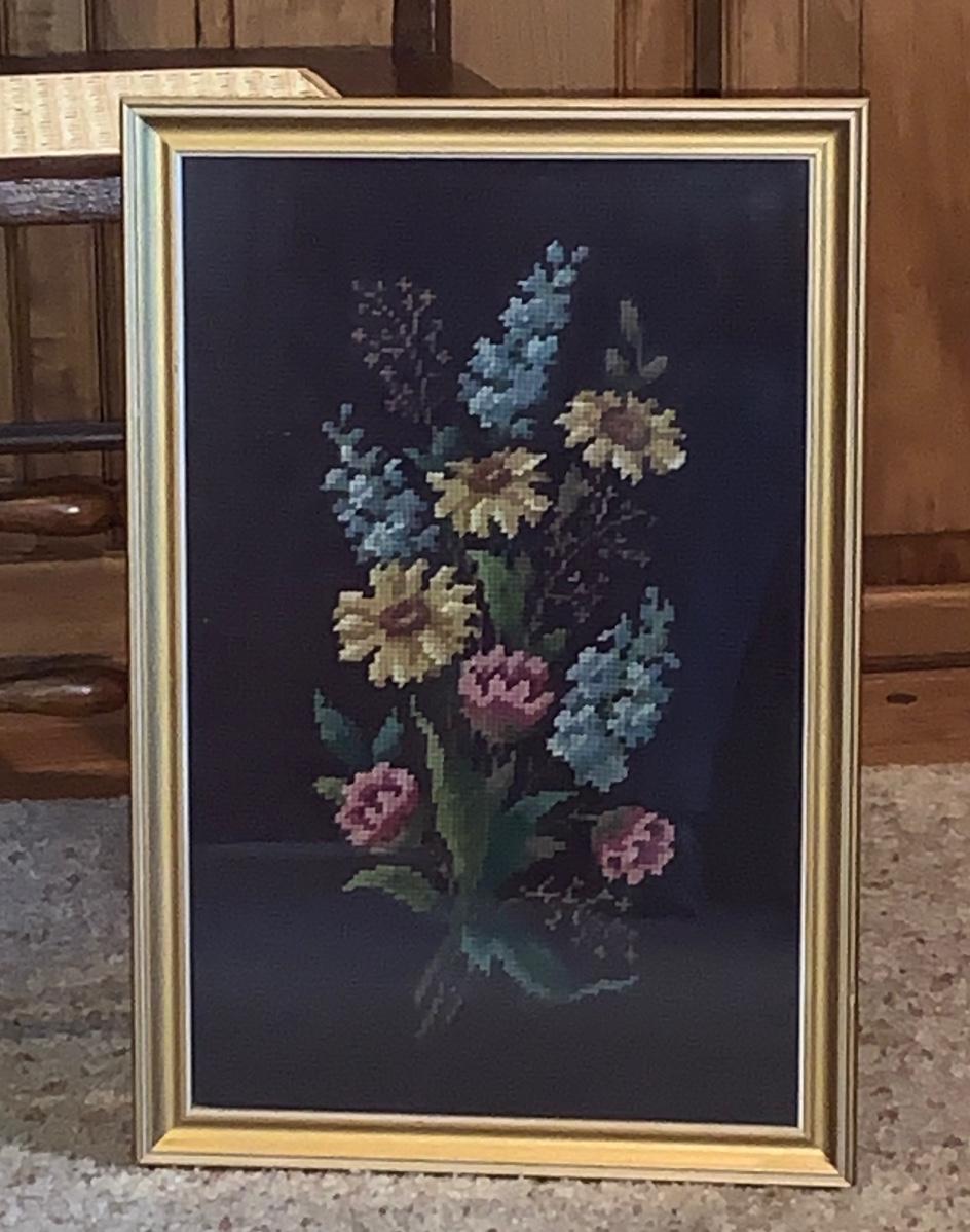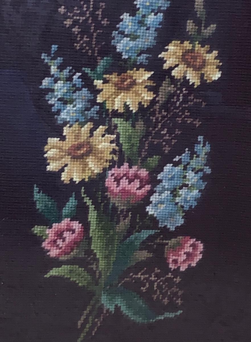 Lot 121 Vintage Afghan, Chair & Floral Needle Point