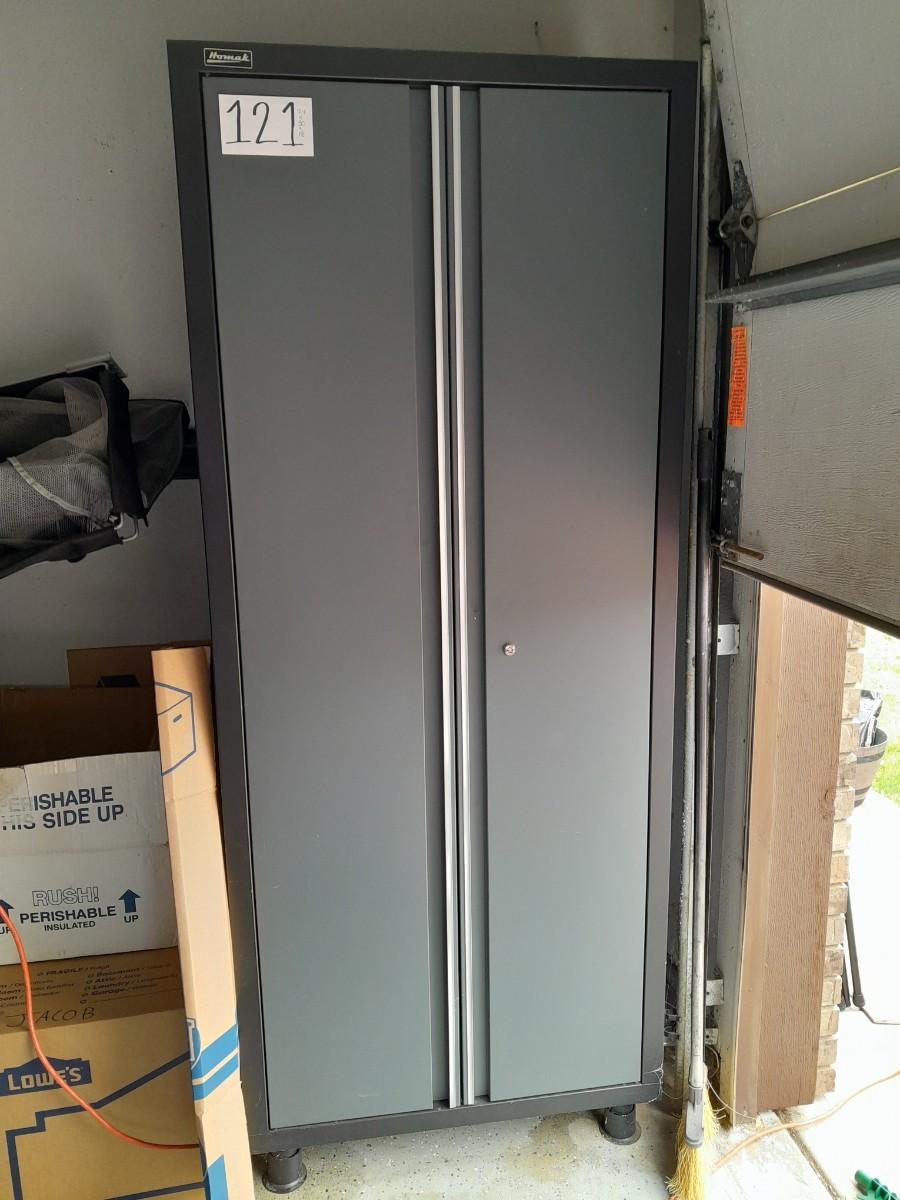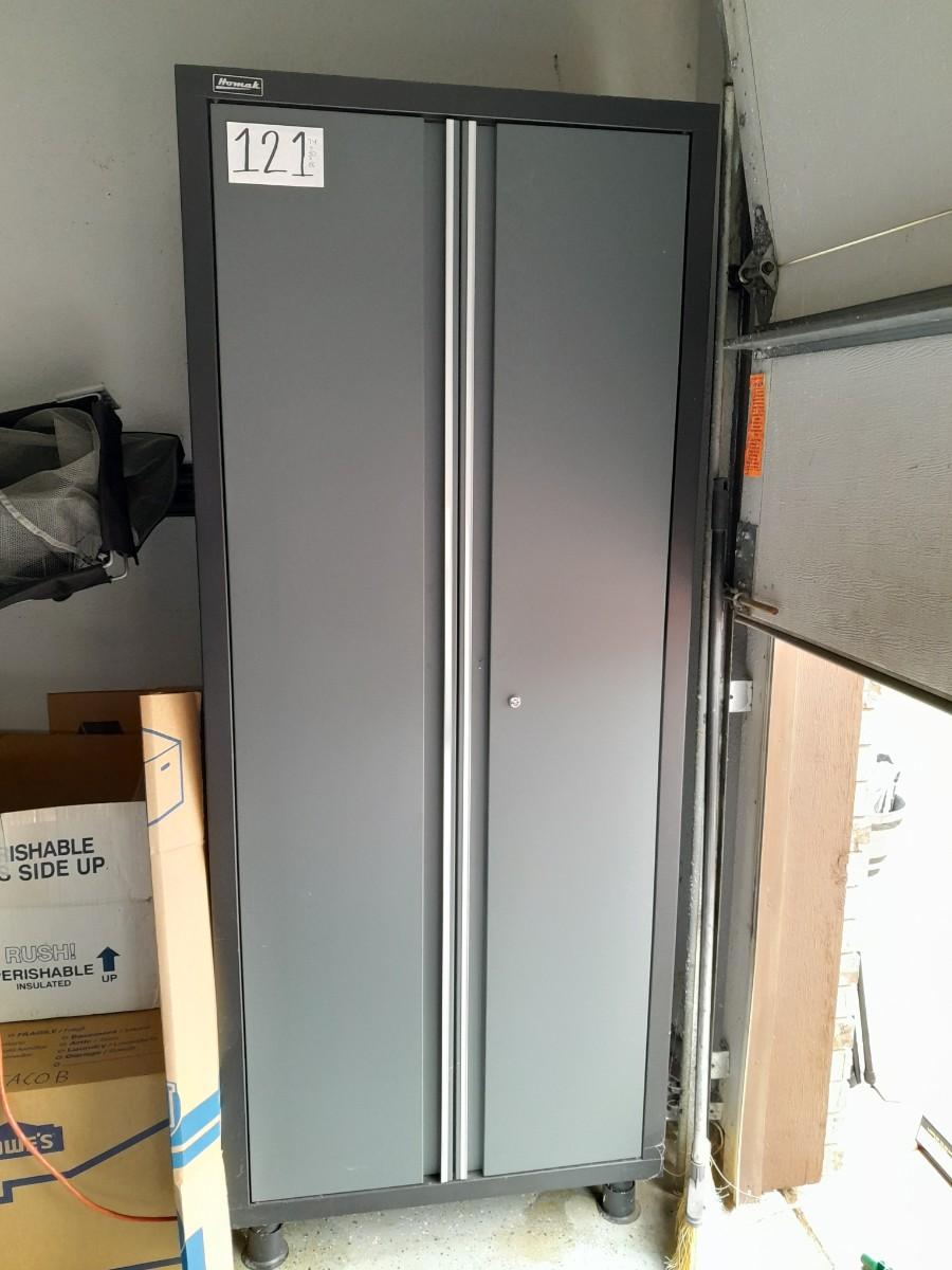 LOT 121 HOMAK LOCKING METAL CABINET WITH KEY