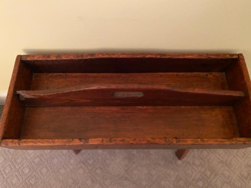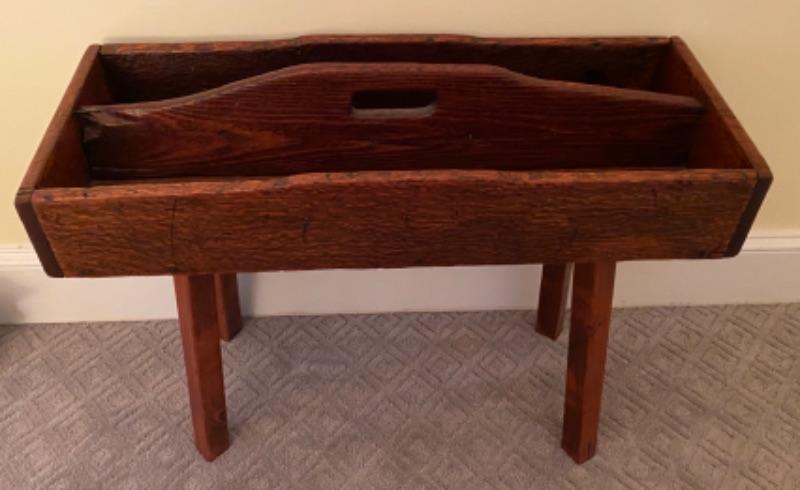 Antique Pine Tool Caddy measures 30.5” l x 12” deep x 22” tall chairs