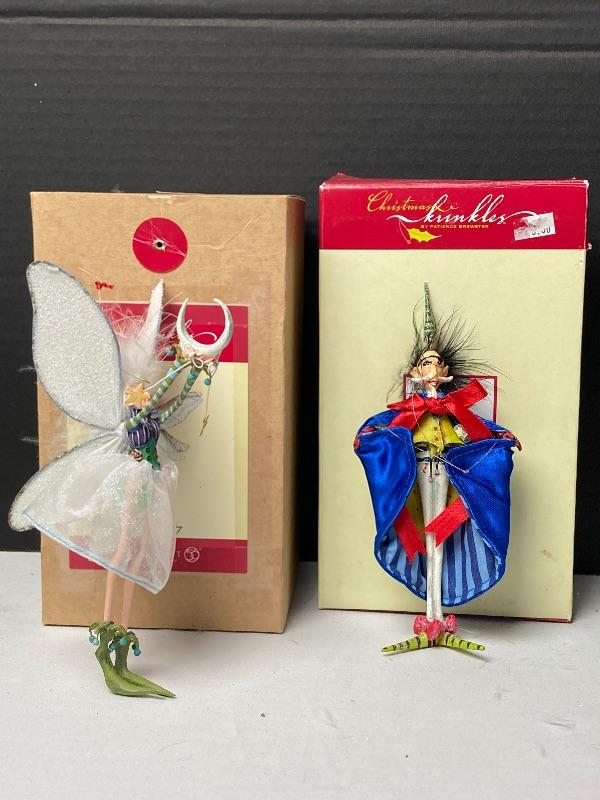 Lot #121 Dept.56 Patience Brewster Christmas Krinkles Moon Fairy and Drosselmyer Ornaments