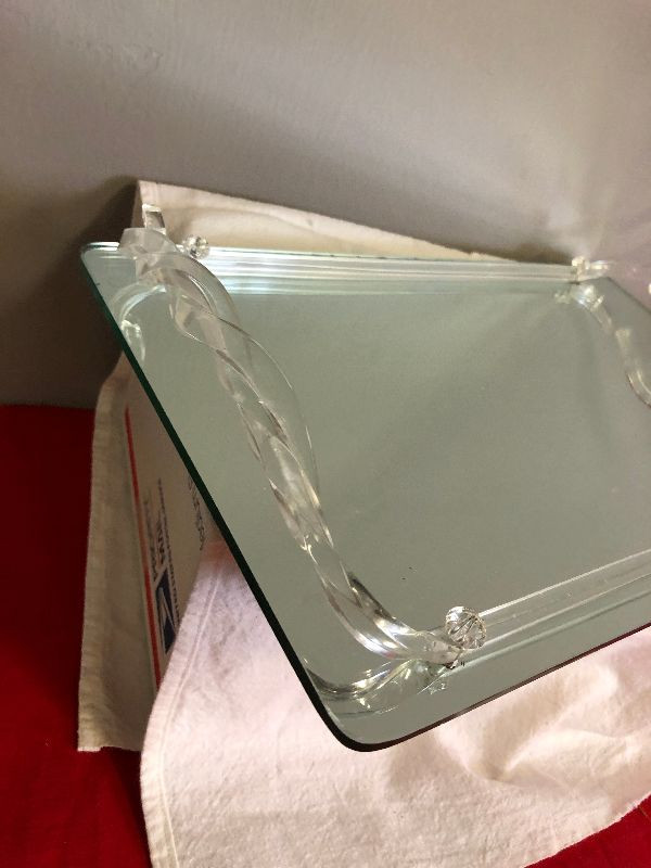 Lot 121 Glass Mirrored tray with Lucite Handles