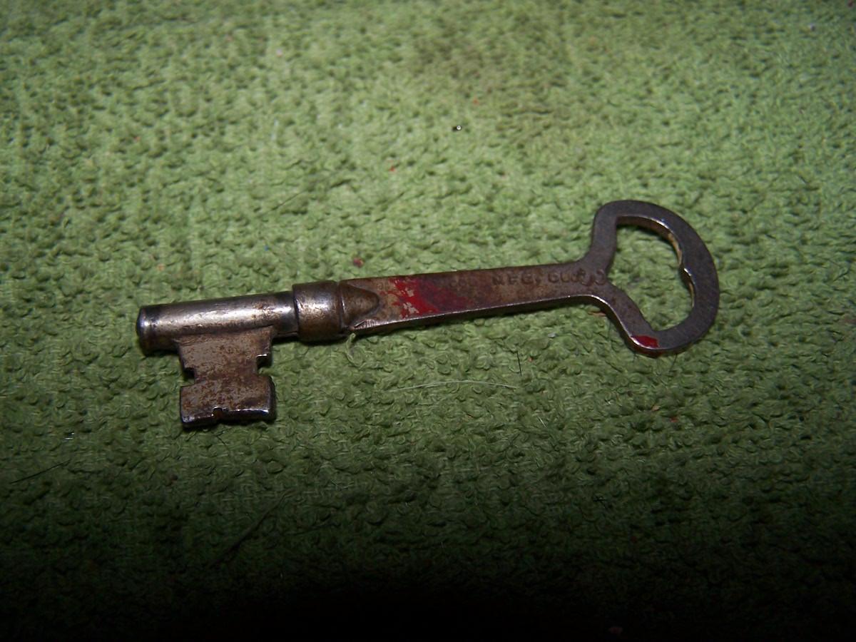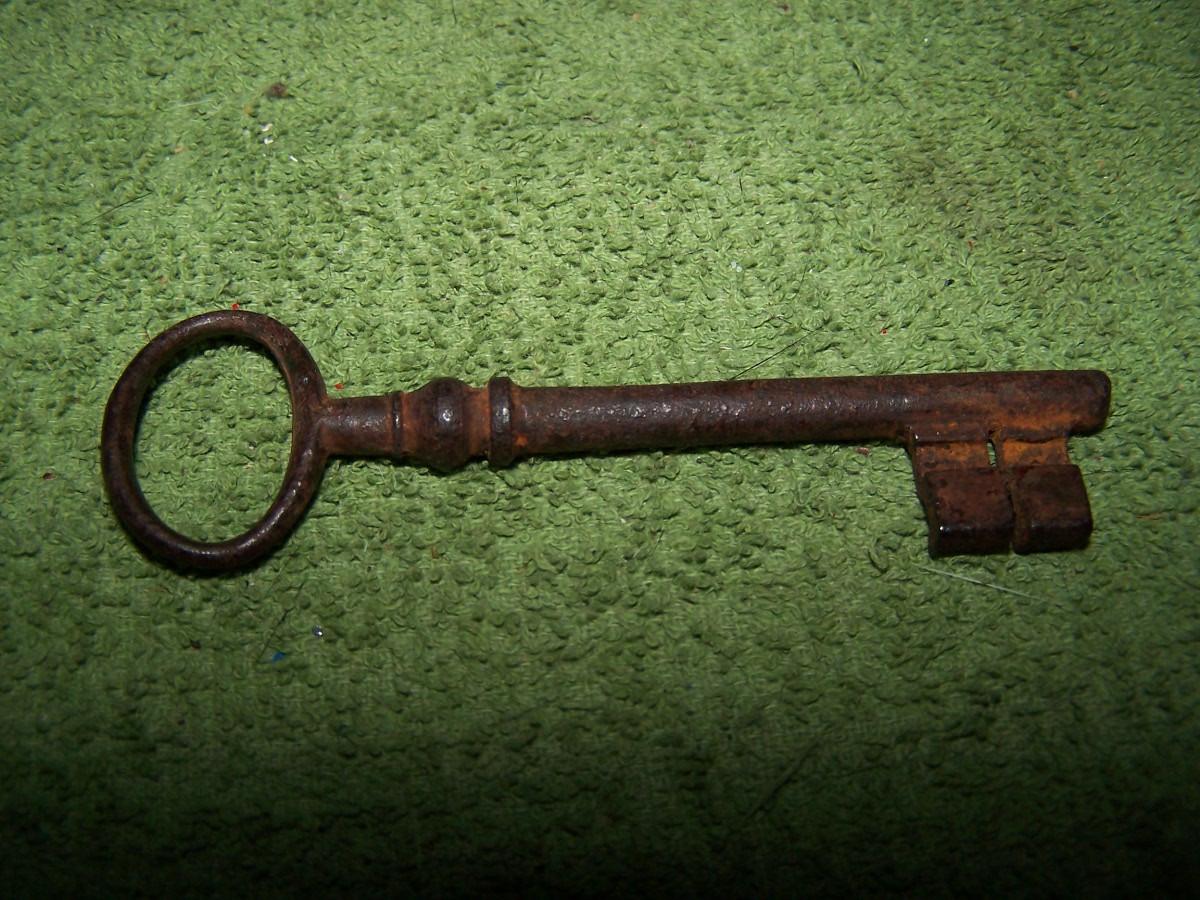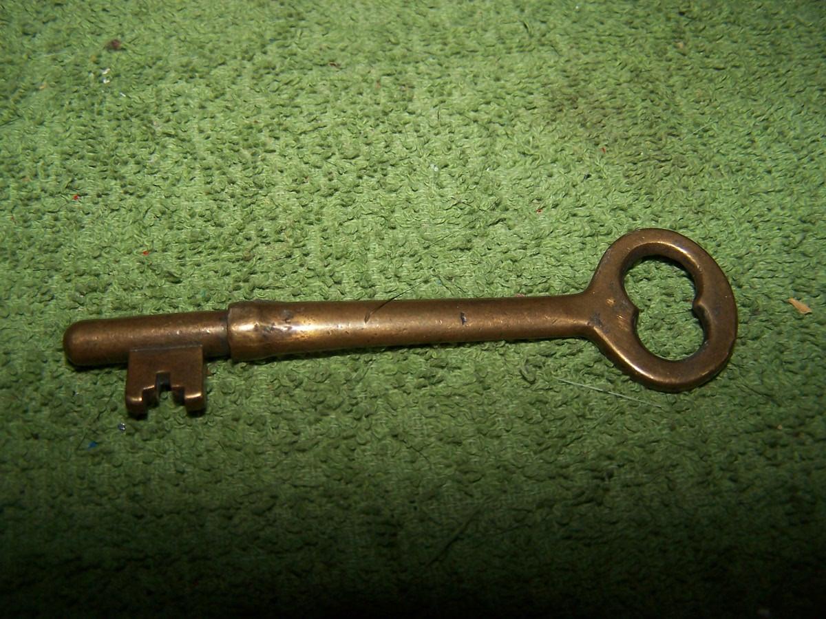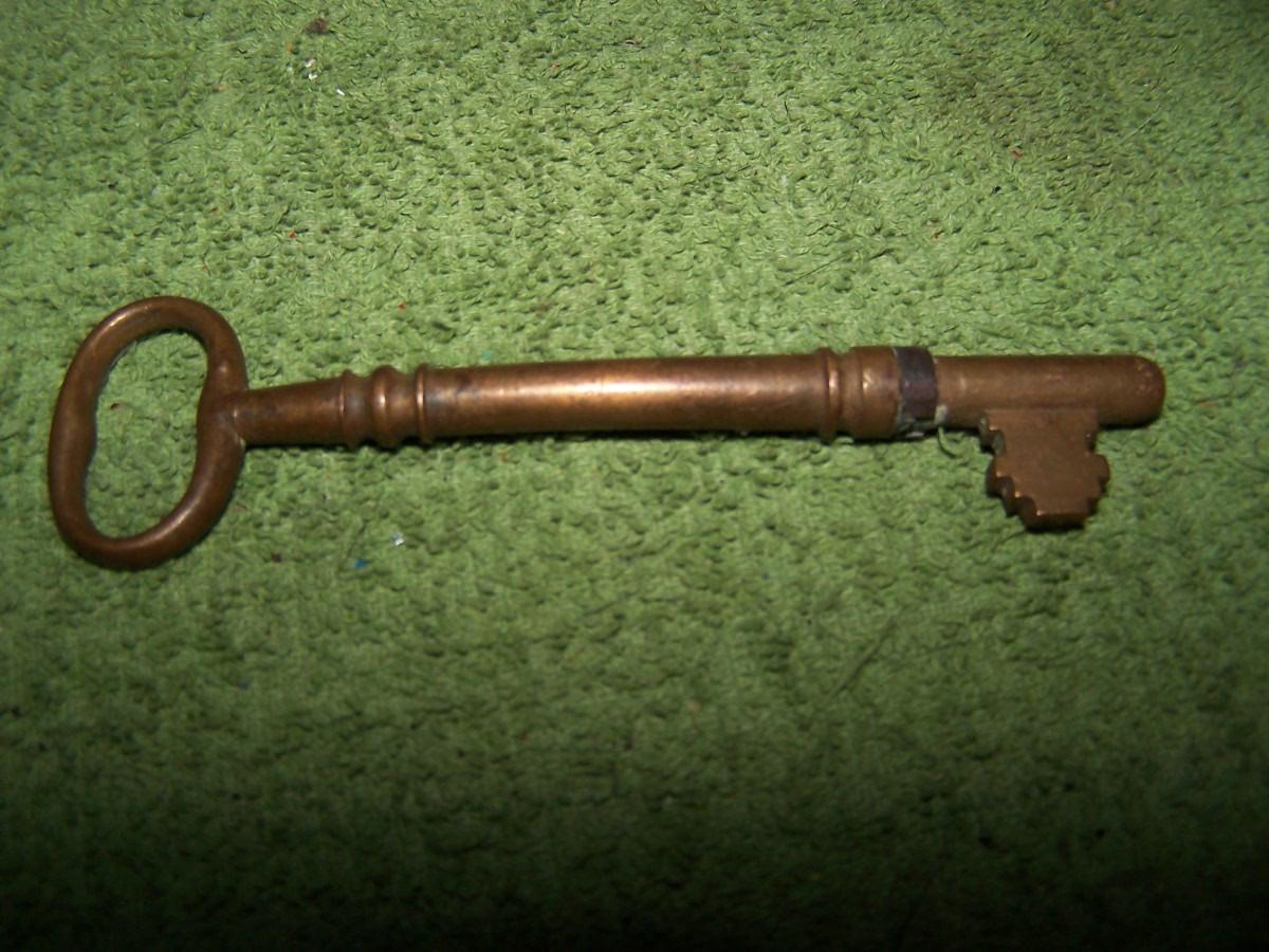 THESE ARE GREAT OLD KEYS!!! LARGE JAIL KEY IS 5 1/4''.. KEYS ARE 2 BRASS AND REST ARE STEEL. WEAR AND SOME RUST