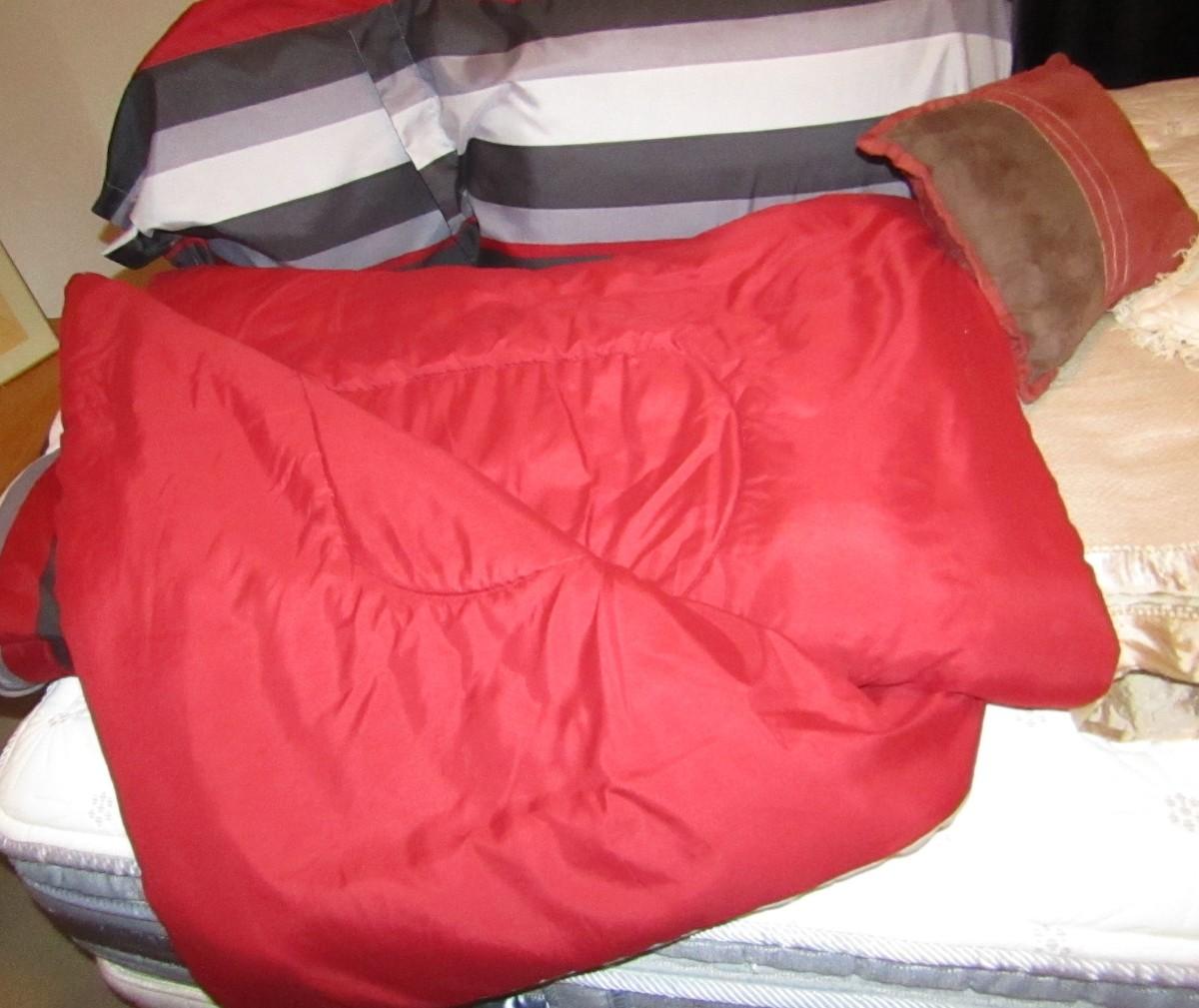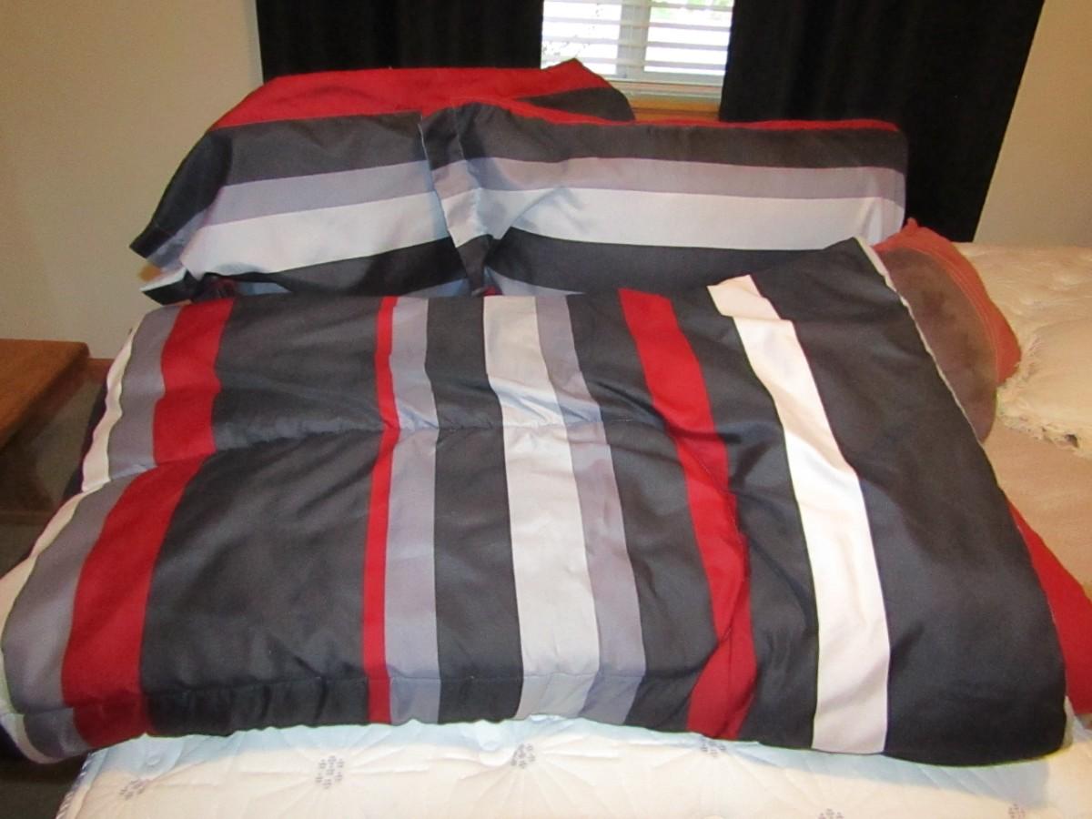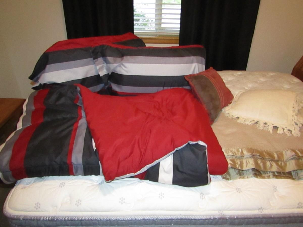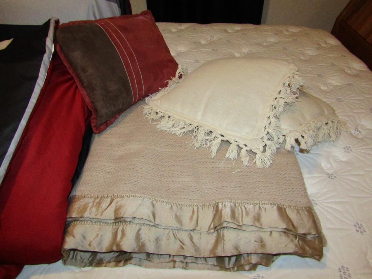 INCLUDES 2 KING PILLOWS WITH SHAMS, COMFORTER, BLANKET AND THROW PILLOWS