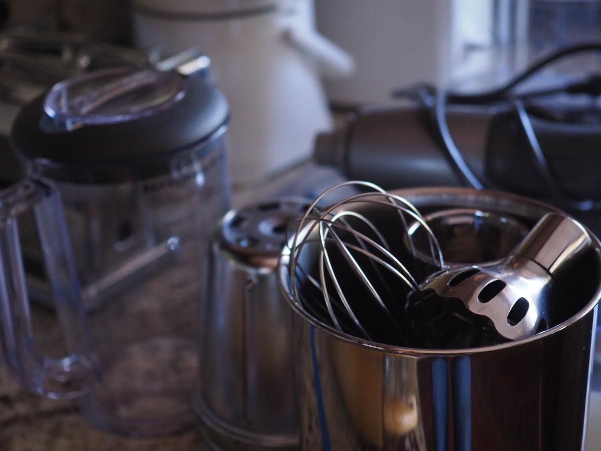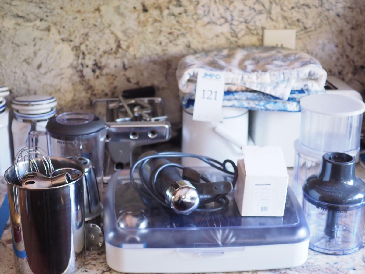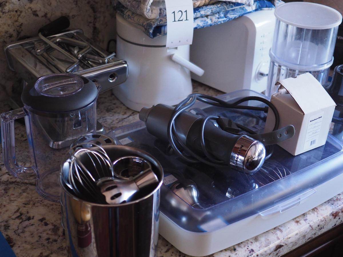 Lot 121 Kitchen aid hand mixer with attachments, More