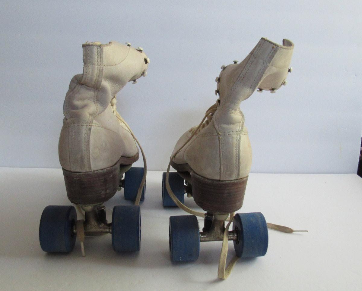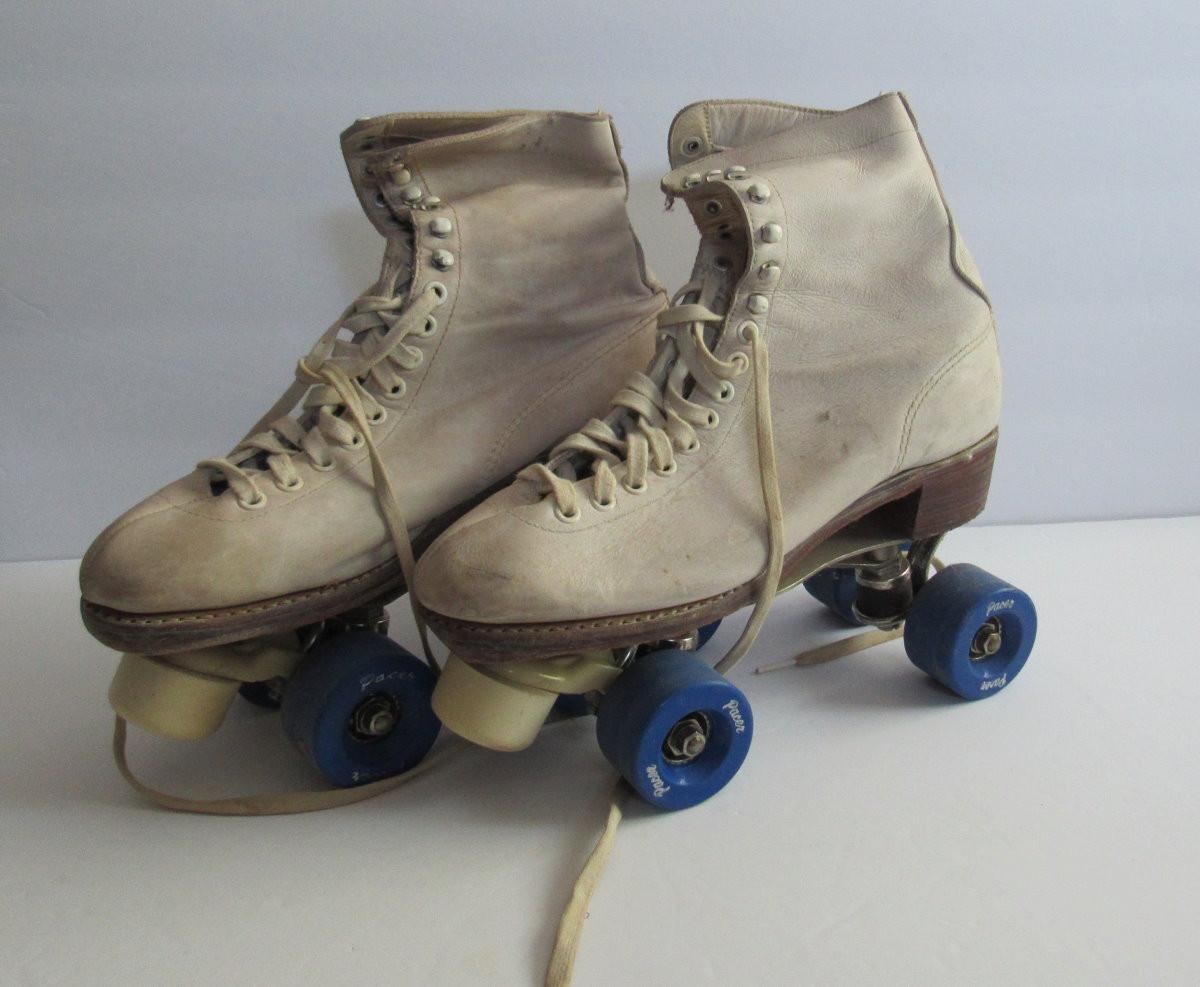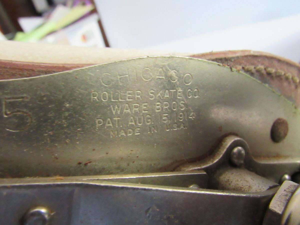 Appears to be in good shape. I don't see any damage, just use wear. Pretty sure they are leather. The size info wore off, they are 10" long from heel to toe.