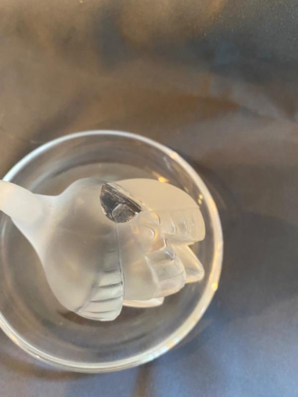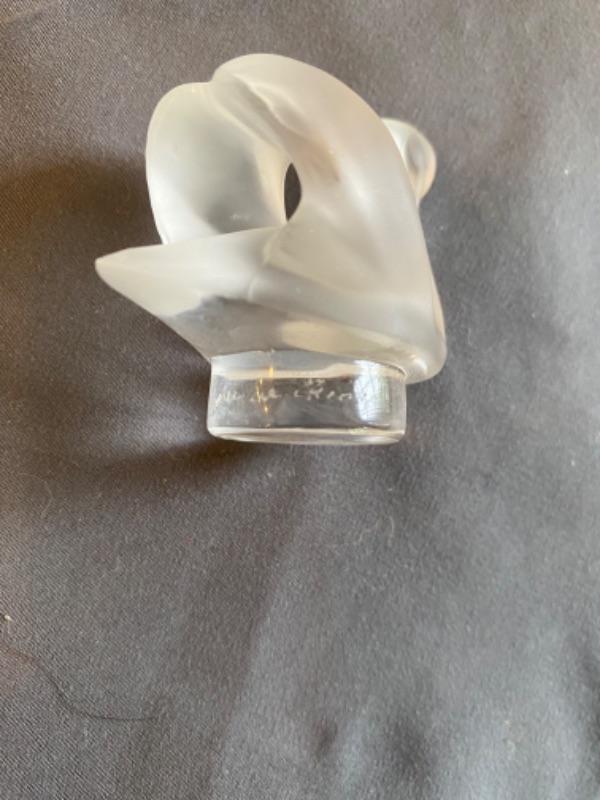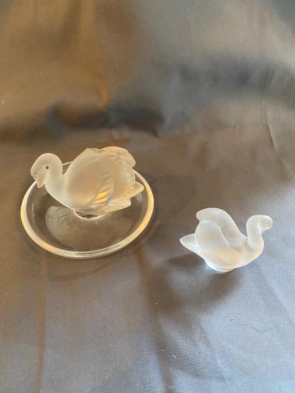Nice Lalique Swan Dish measures 3.5” round with damage, and frosted swan figure measures 2”x 2”