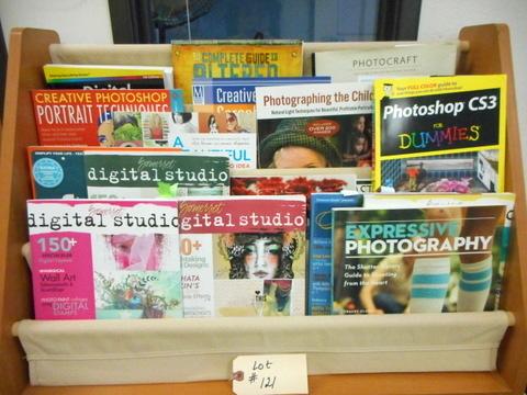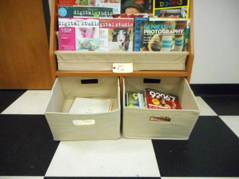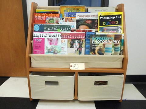 Lot 121 - Magazine or Book Rack with two cubby baskets + photography mags