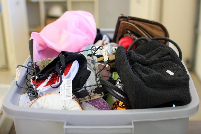 Lot 121: Misc Tub - Purses, Kitchenware, Sewing Items and More