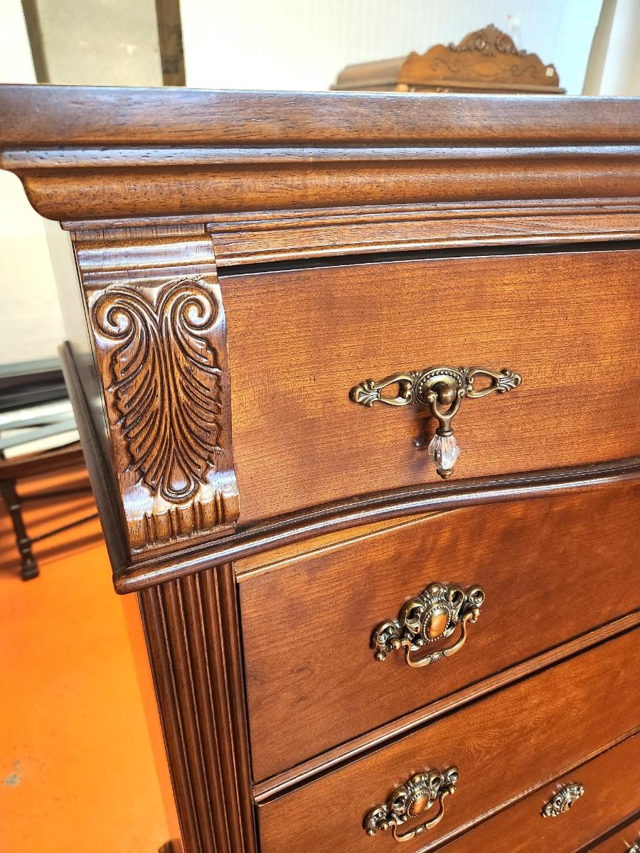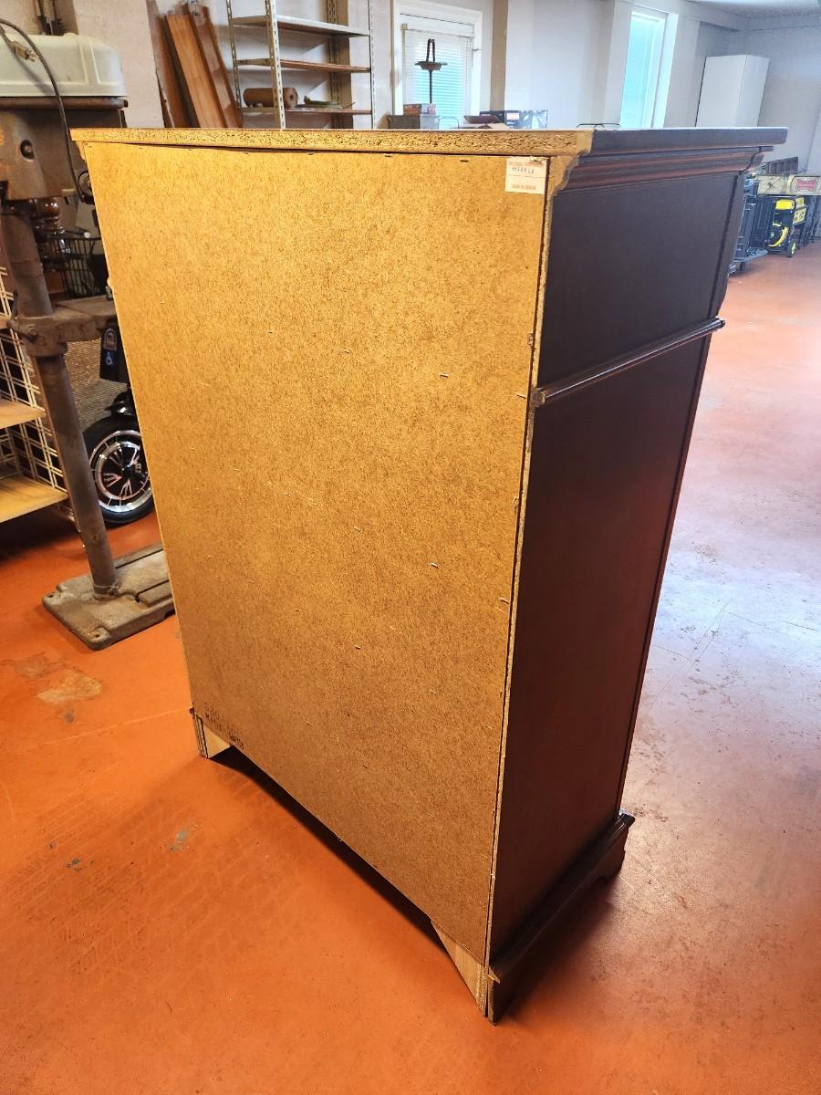 Good looking chest of drawers from Universal Furniture Company - 5 drawers, Mahogany finish, Tear drop pulls on top. 16.5" deep, 38" across, 53.5" tall.