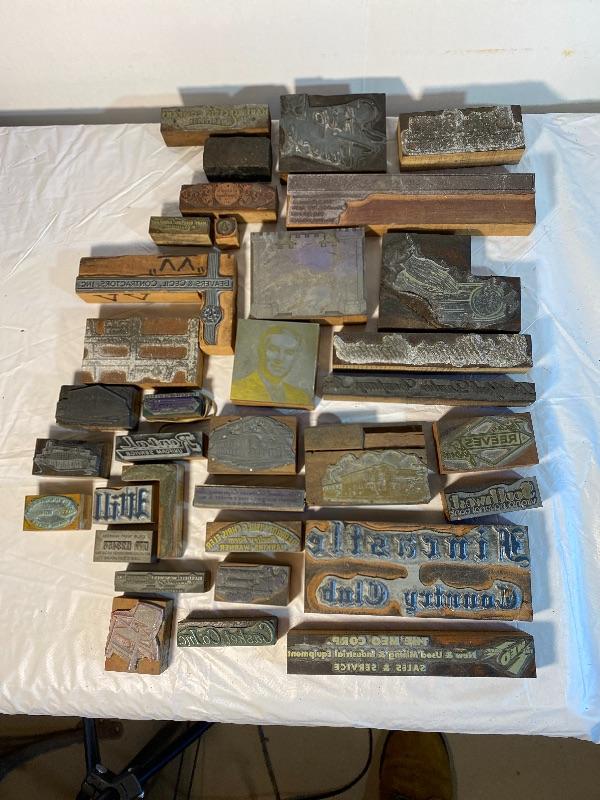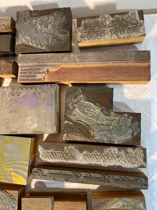 Lot 121 s Vintage Typesetting Typeset News Paper Metal on wood Typesetting