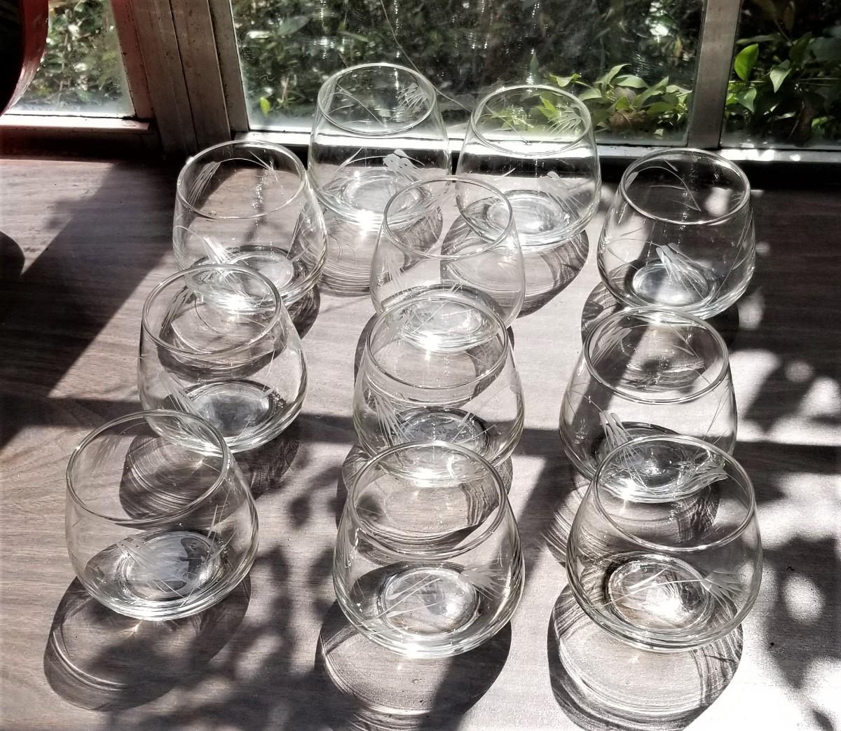 Lot #121 Set of 11 Acid-etched vintage bar glasses