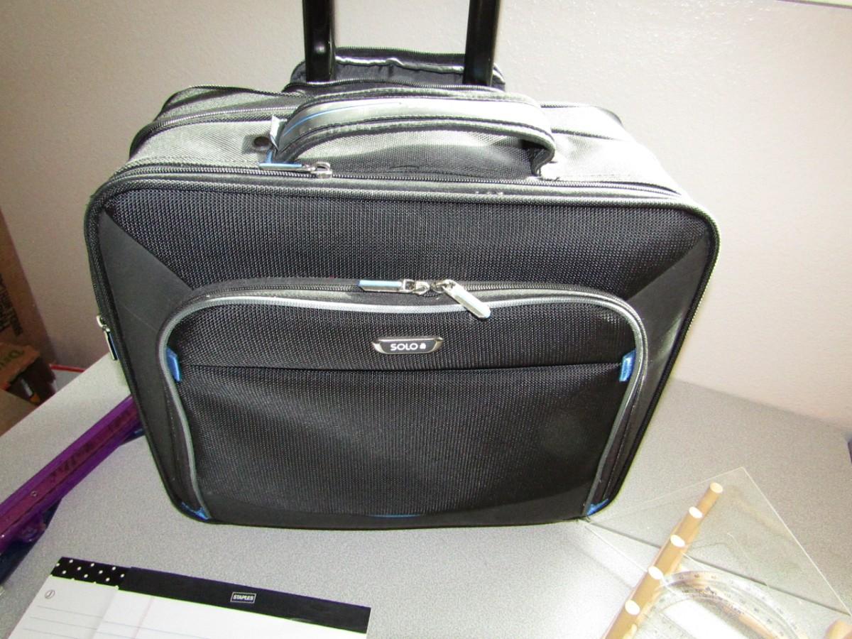 LOT 121, SOLO ROLLING CASE AND SCHOOL SUPPLIES