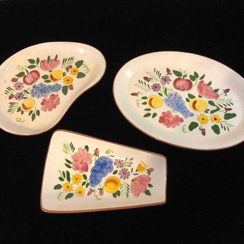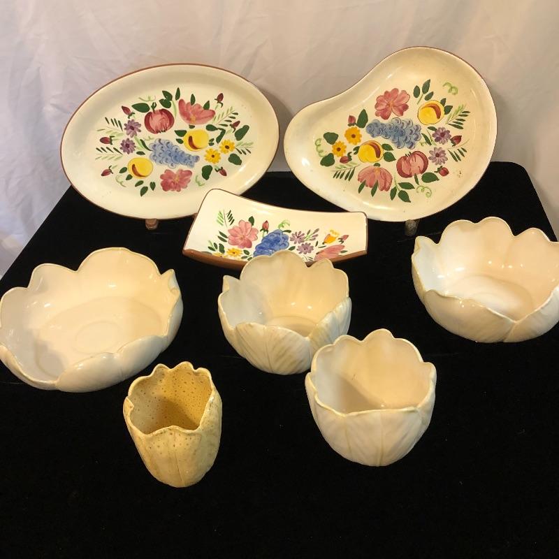 This lot includes vintage hand painted Stangl pottery including a fruit and flower bowl, oval platter and kidney shape plate. There are also five nesting bowls from the Biltmore Estate - perfect for the holidays! Shipping Available.