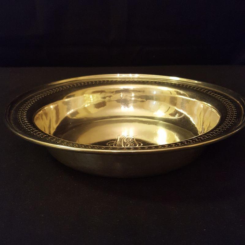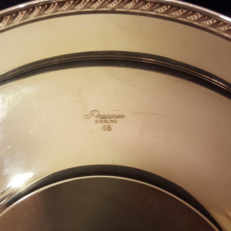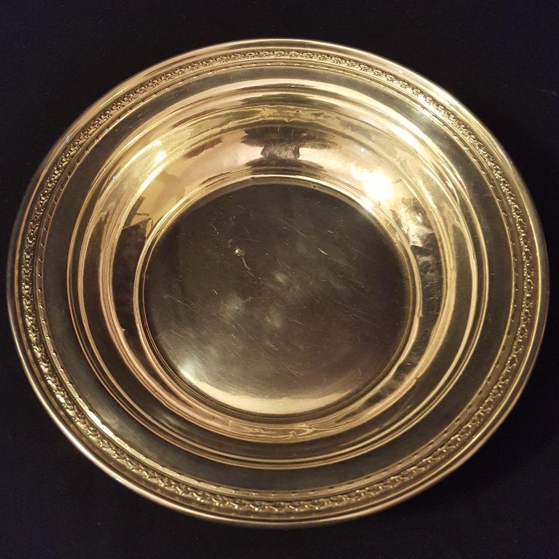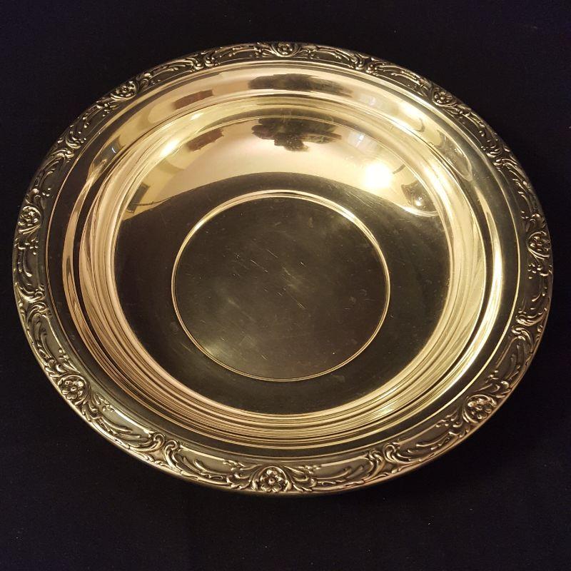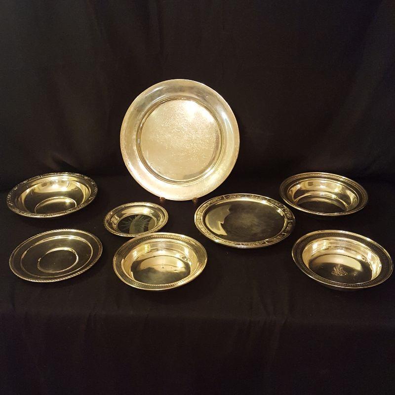 You will get 4 bowls and 6 platters in this sterling silver lot. This is great for having every size and shape you need for entertaining. The large platter (13in) has some wear on the top, but still functional! The pedestal platter also has some wear. There are two matching bowls, with one of them engraved on the top. The engraved one has a slight ding in the side, see pictures. The largest bowl with flowers and scrolling around the rim (9.5 in) appears to be in great shape, just ready for your next side dish. The smallest plate (7in) has a glass bottom with a star burst frosted on it. Starting price based on melt value of Sterling.