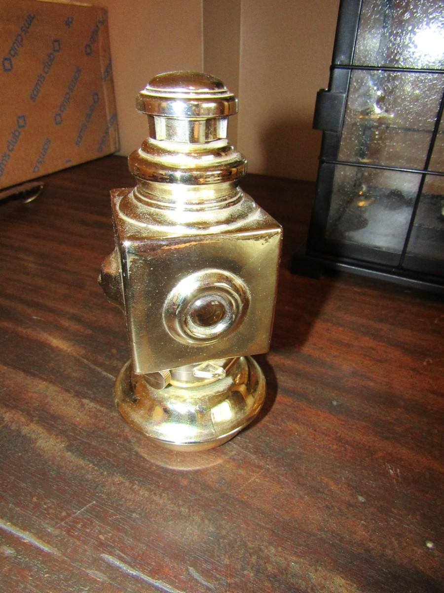 AVON LANTERN BOTTLE, BRASS PLATE ON A WOODEN HANDLE