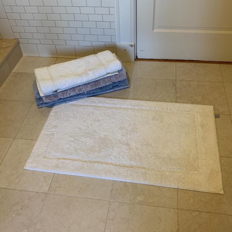 Lot 121 - Teak Bath Bench, Bathroom Mats, and More