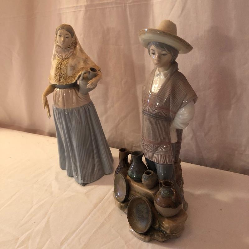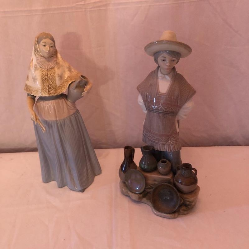 This lot includes two Spanish Lladro Figurines. The male figurine is 12” high. The woman is also 12” high. Shipping Available.