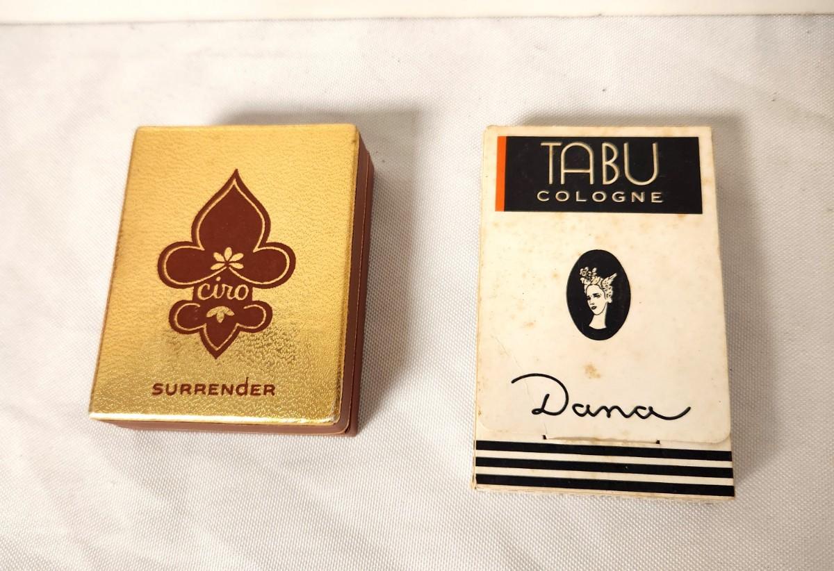 Two vintage perfumes in original box - Tabu (a classic), 1/4 oz size, and Surrender by Ciro 1 1/4 dram size. 1960's.