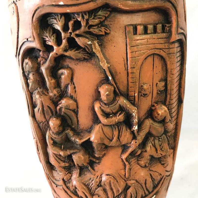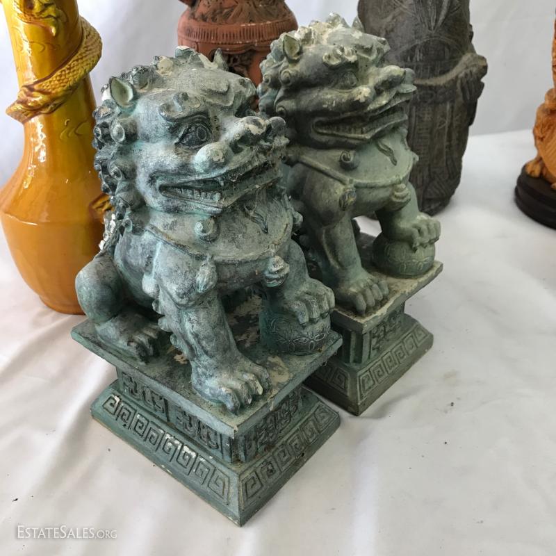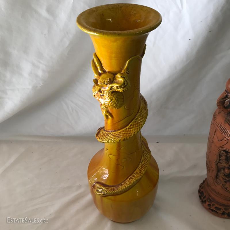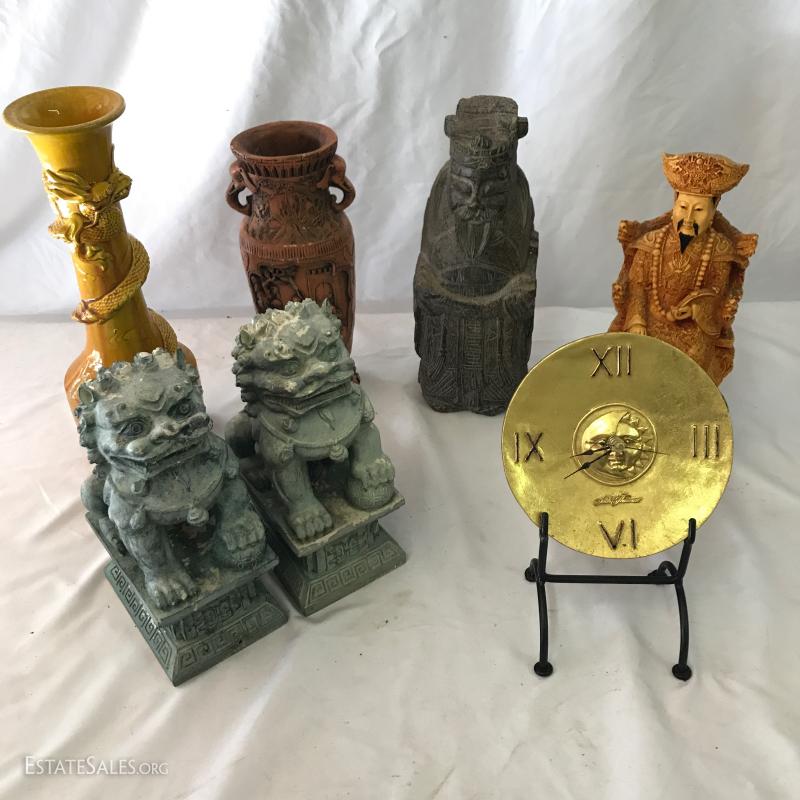 Various statues and glazed vase. Tallest is vase at 14.5" tall. Also includes Seth Thomas battery powered clock plate (7"d) on stand. Shipping available or local pick up in Waynesville, NC.
