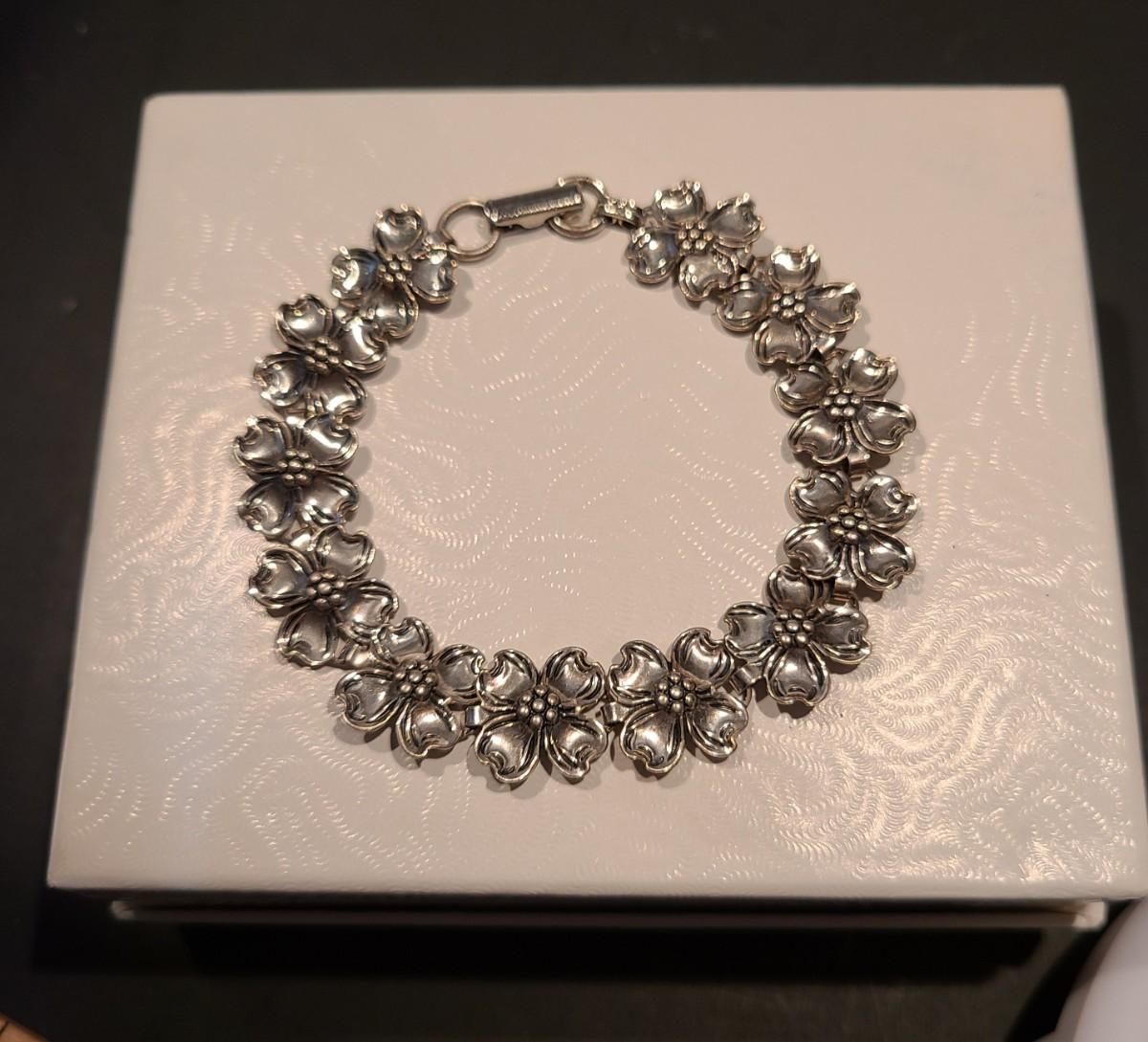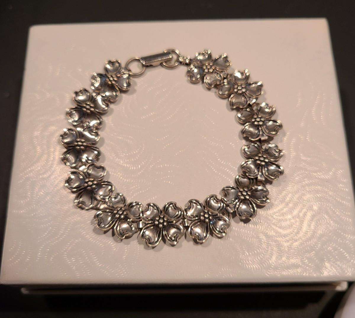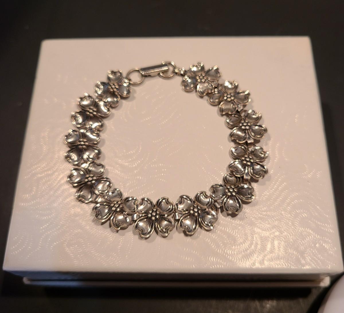 Vintage bracelet with gorgeous dogwood flowers. Marked sterling and Beau. No box. Please see pics for measurements.