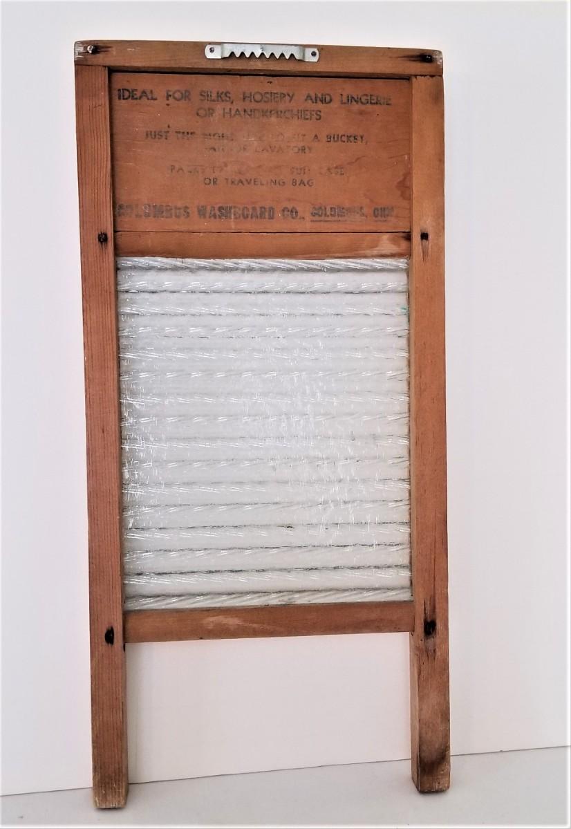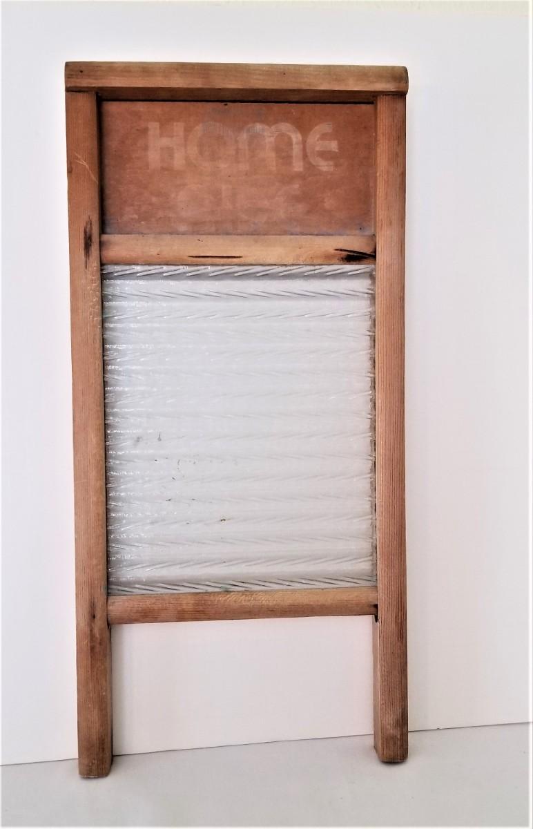 Cute little advertising washboard - glass. Stands 8.5" across, 18" tall, Home side brand.