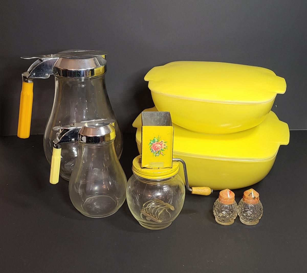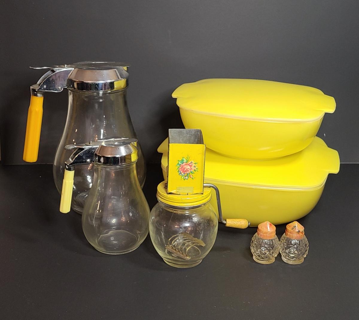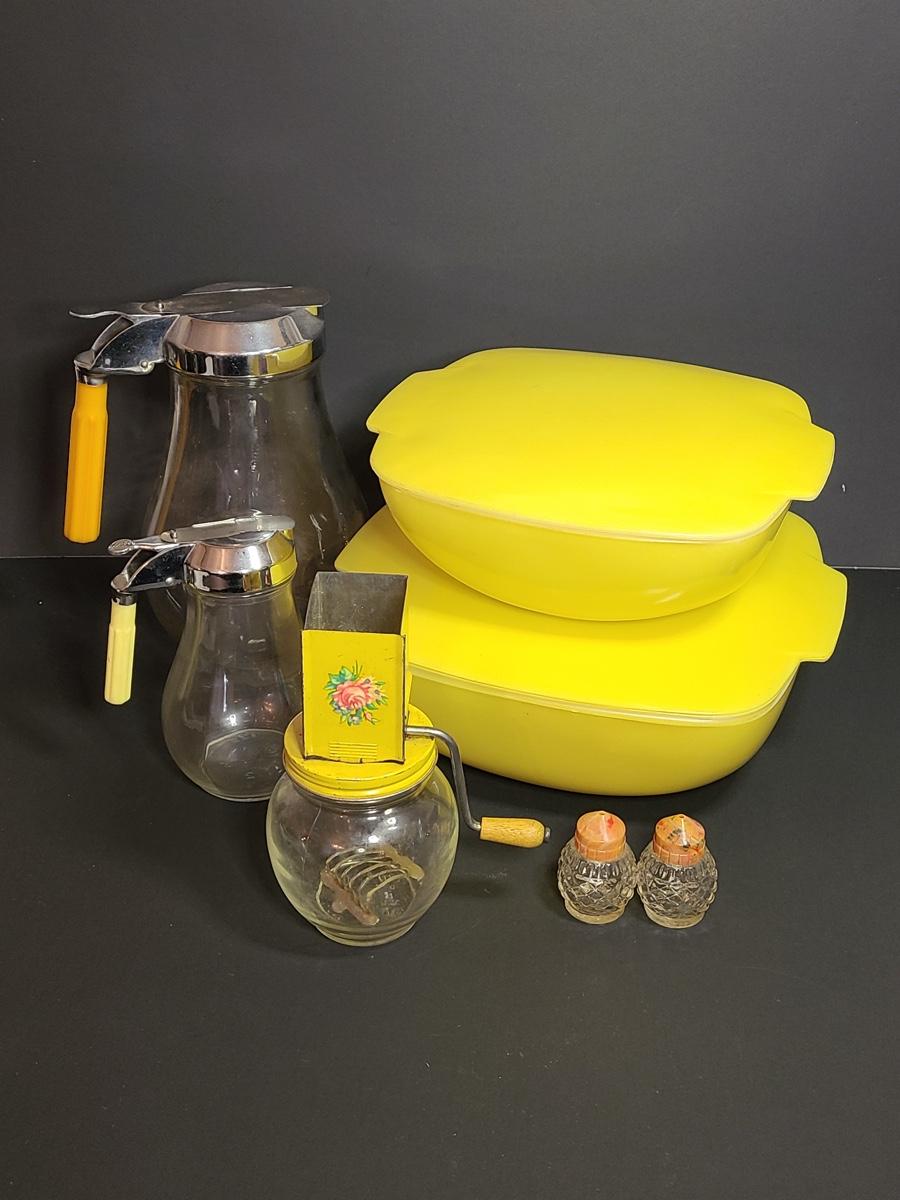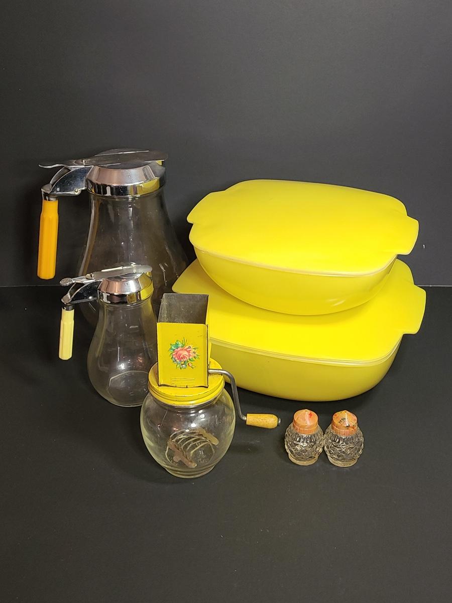 Lot 121; Vintage Kitchen: Pyrex Square Casseroles, Dripcut Pitchers, and More