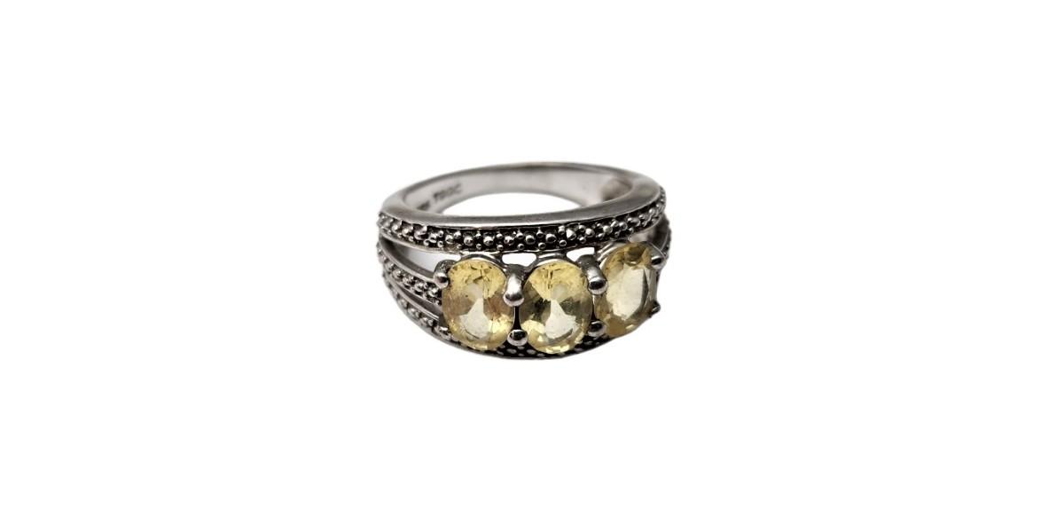 So pretty! Sterling Silver (marked) ring set with faceted oval lemon quartz - open backed setting - great condition. Size 7.