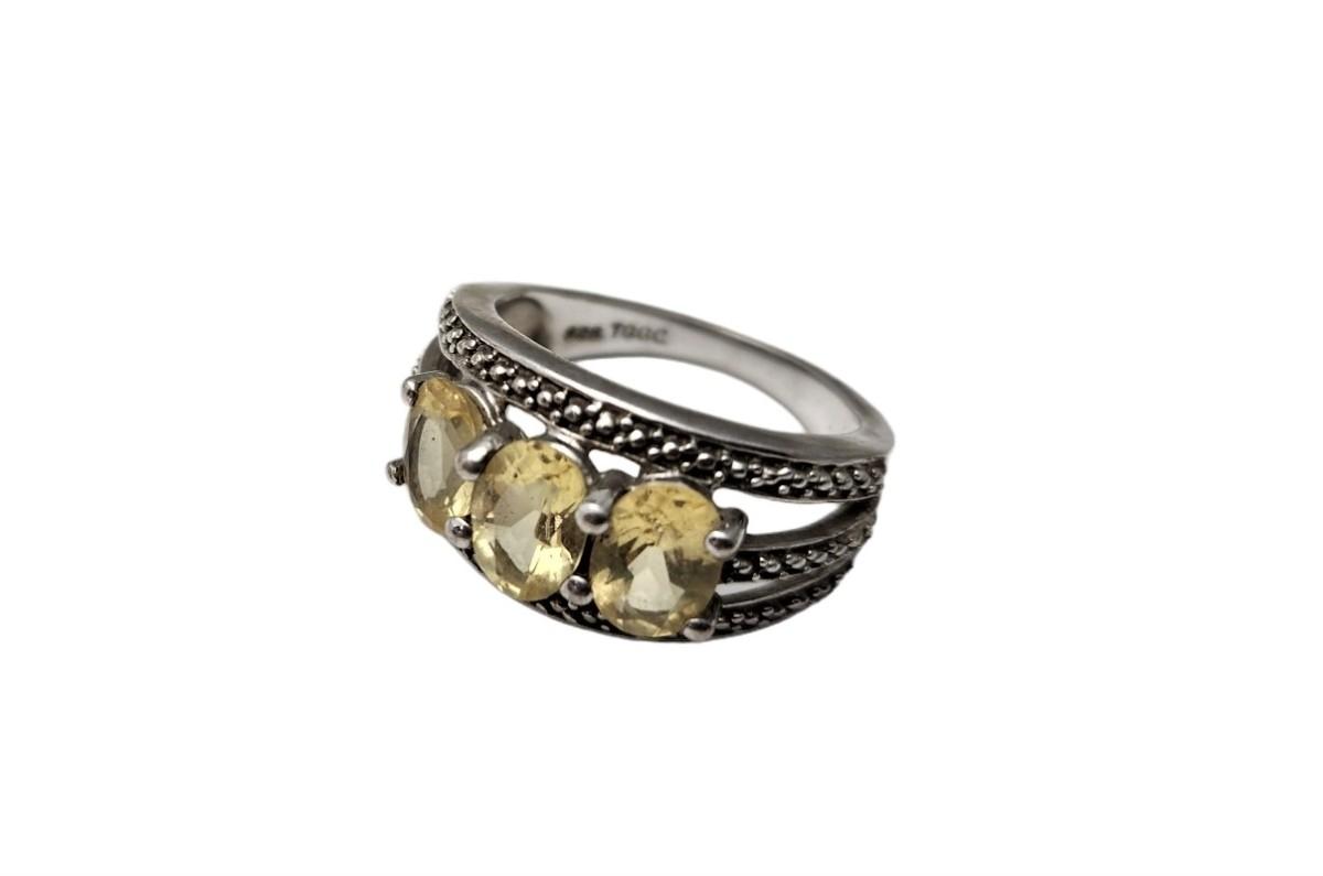 Lot #121D Contemporary Sterling Silver Ring set with Lemon Quartz - size 7