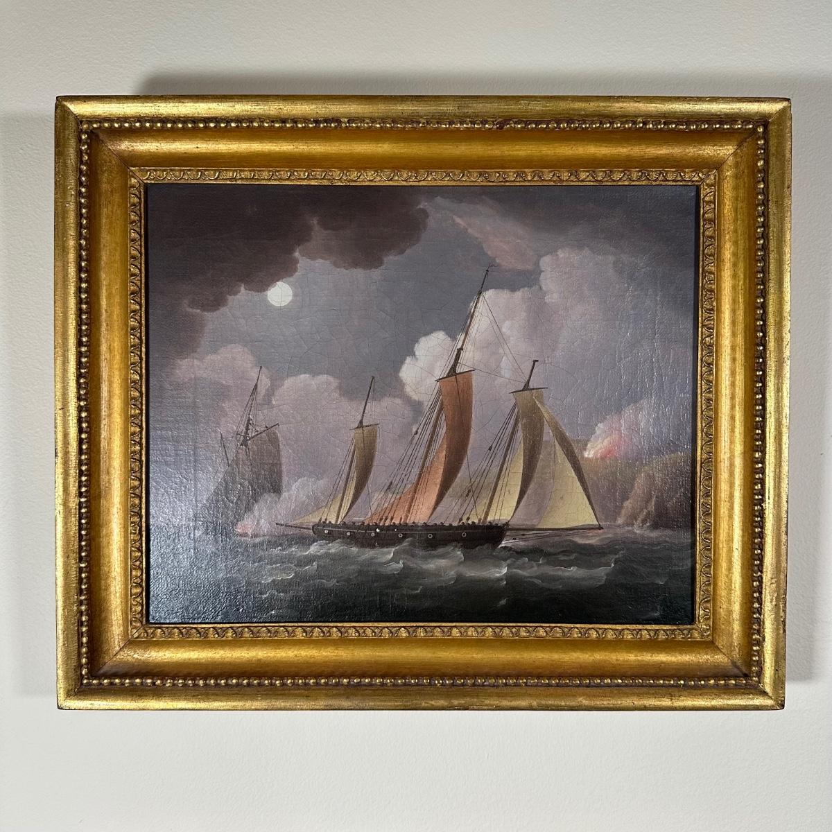 LOT 121H: Antique Original Oil Painting in the manner of Thomas Birch