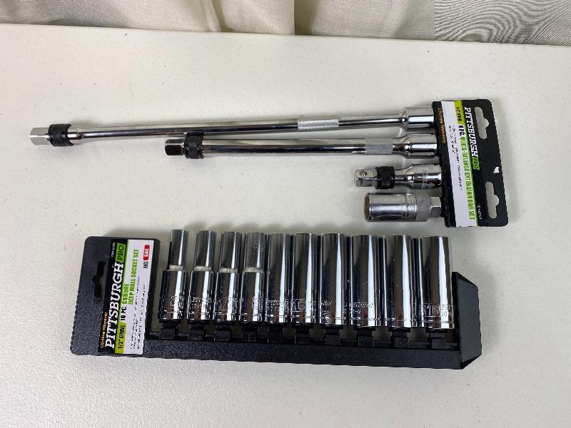 Lot# 122 1/2” Drive Pittsburgh Pro Deep Well Quick Release Extension Bar Set Mechanic Tools