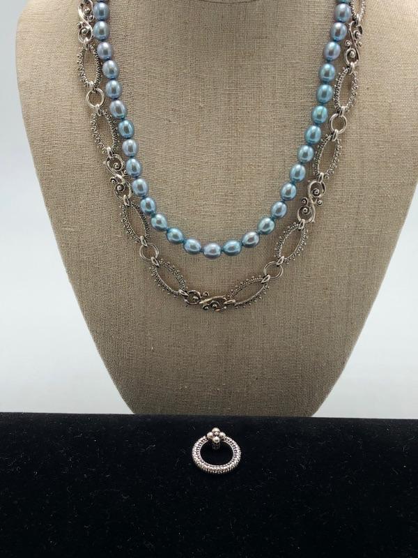 2 amazing 18K 925 Barbara Bixby necklaces. Also included a circle pendant that can go on either necklace. It has a gold side and a silver side. All hoops (on necklaces and on extra pendant ) have 18K 925 mark on inside.
