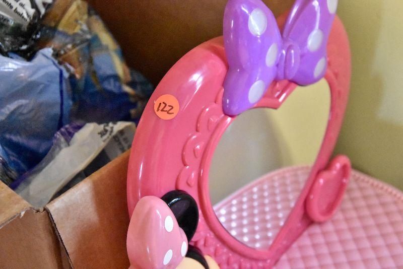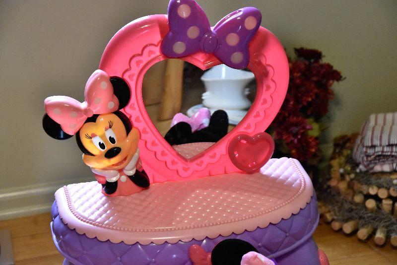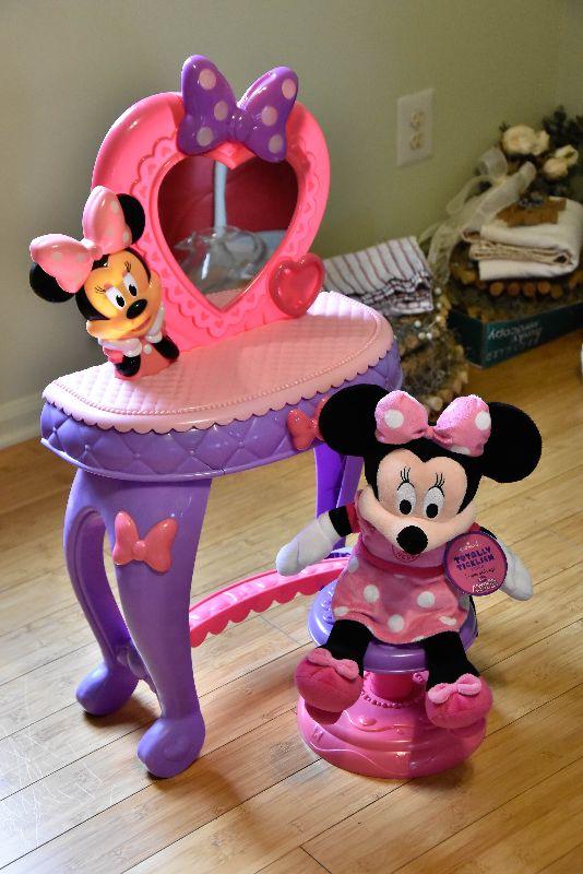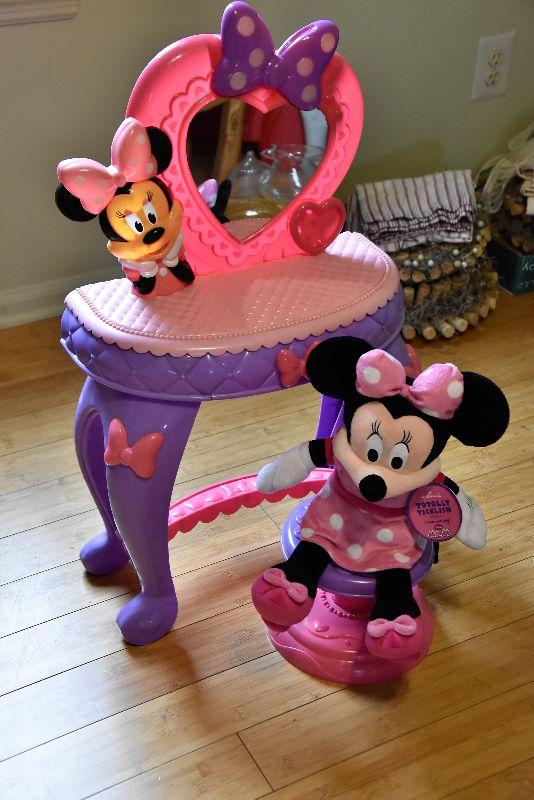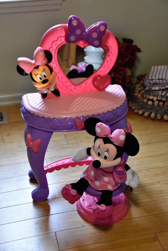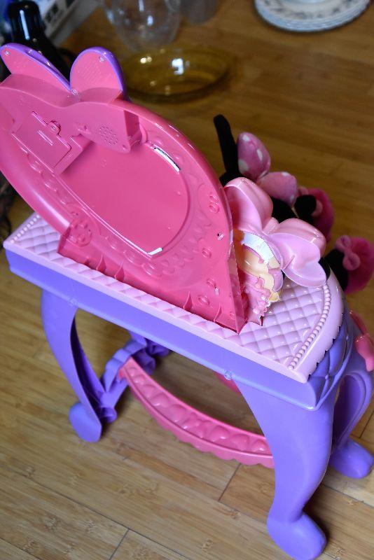 Minnie Mouse vanity for you little princess and a Minnie Mouse doll