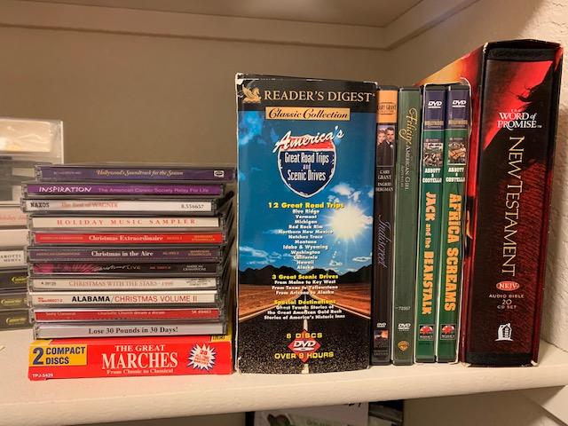 Tapes, tape cleaner, CDs, and DVDs