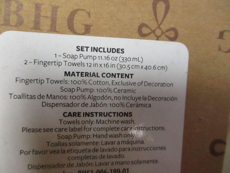 The soap pumps show signs of crazing, but the the towels would still be a great addition to your bathroom