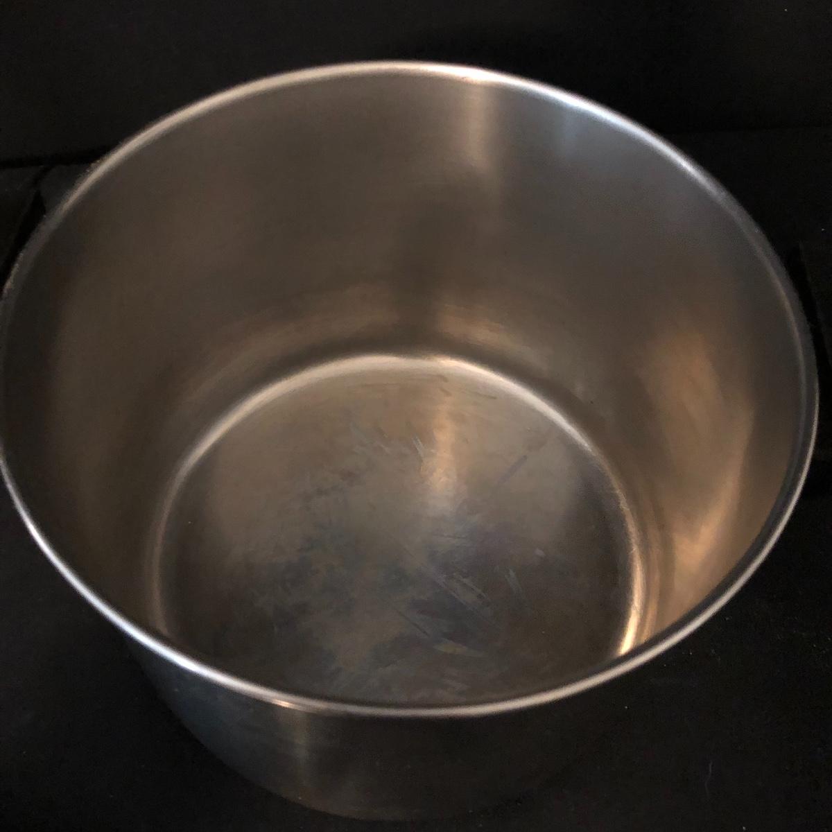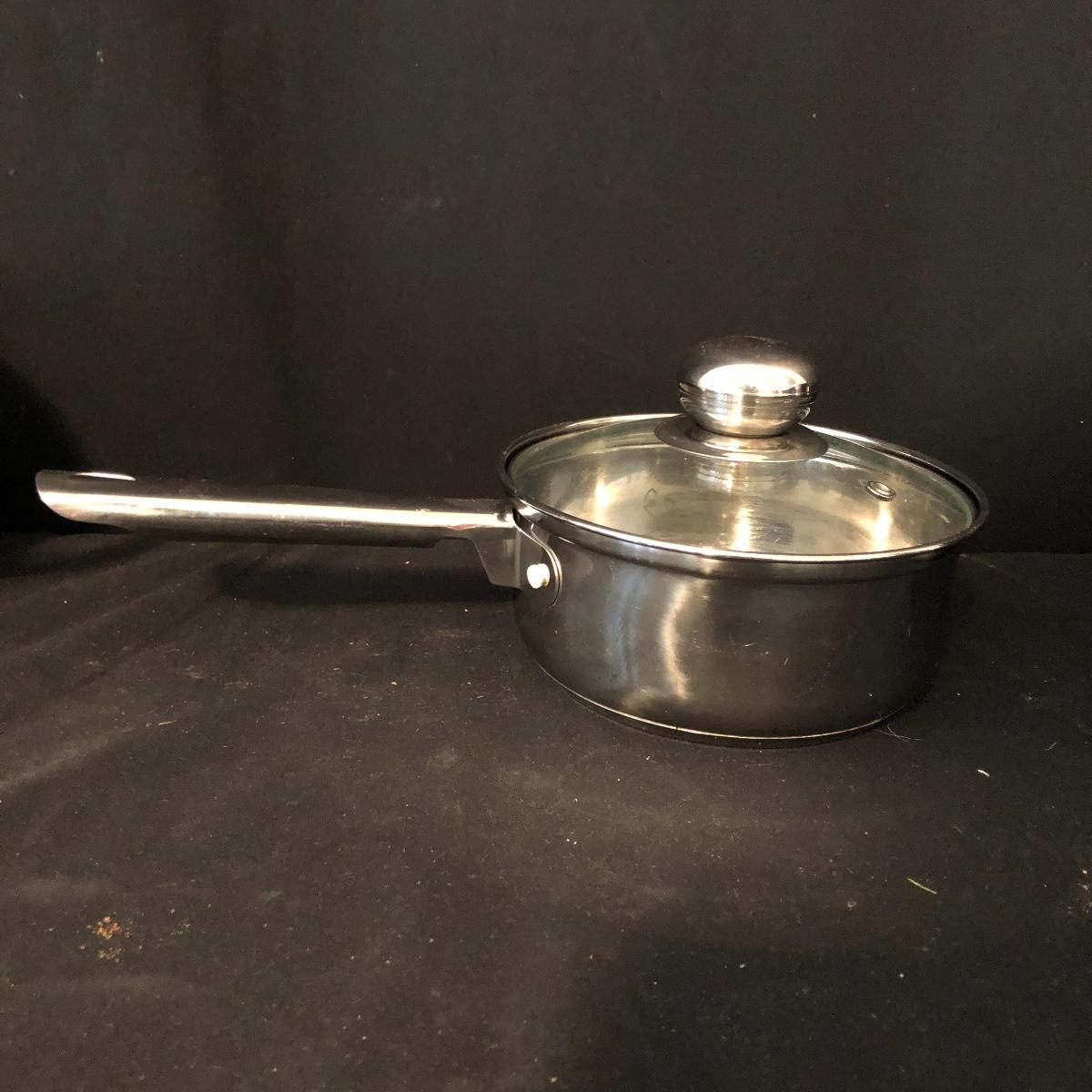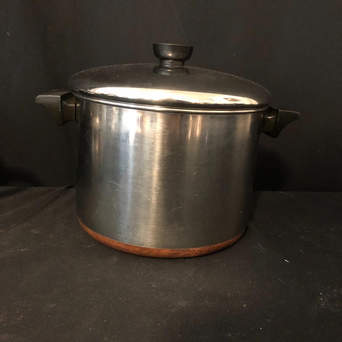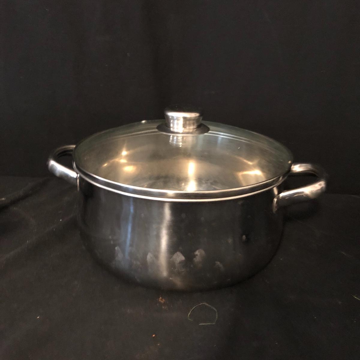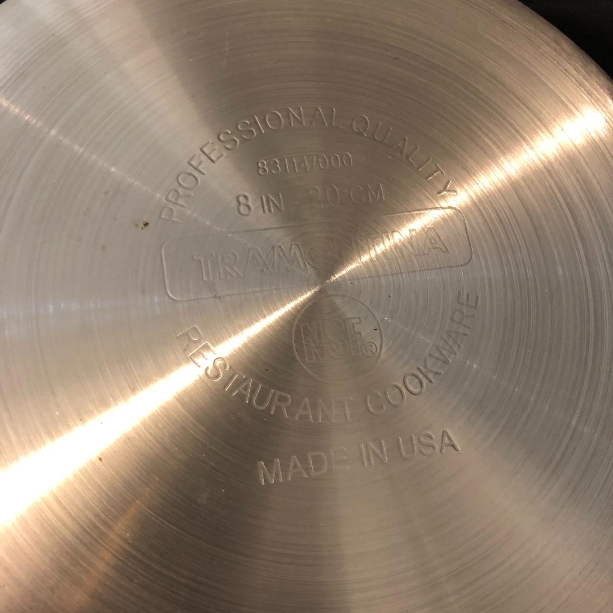 A great starter kit for the college student. Lot includes Tramontana and Mirro frying pans, Farberware pot with lid, Revere Ware pot with lid, T Fal pot with lid and more. Largest frying pan measures 12”D.