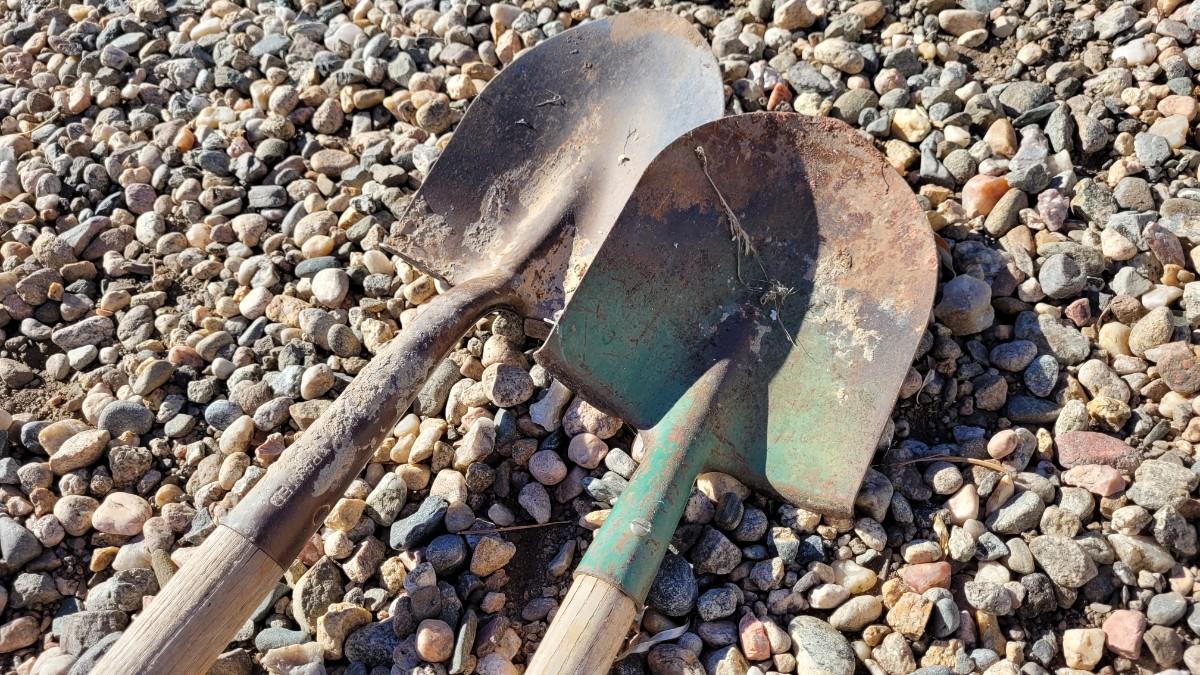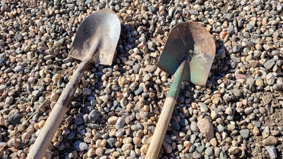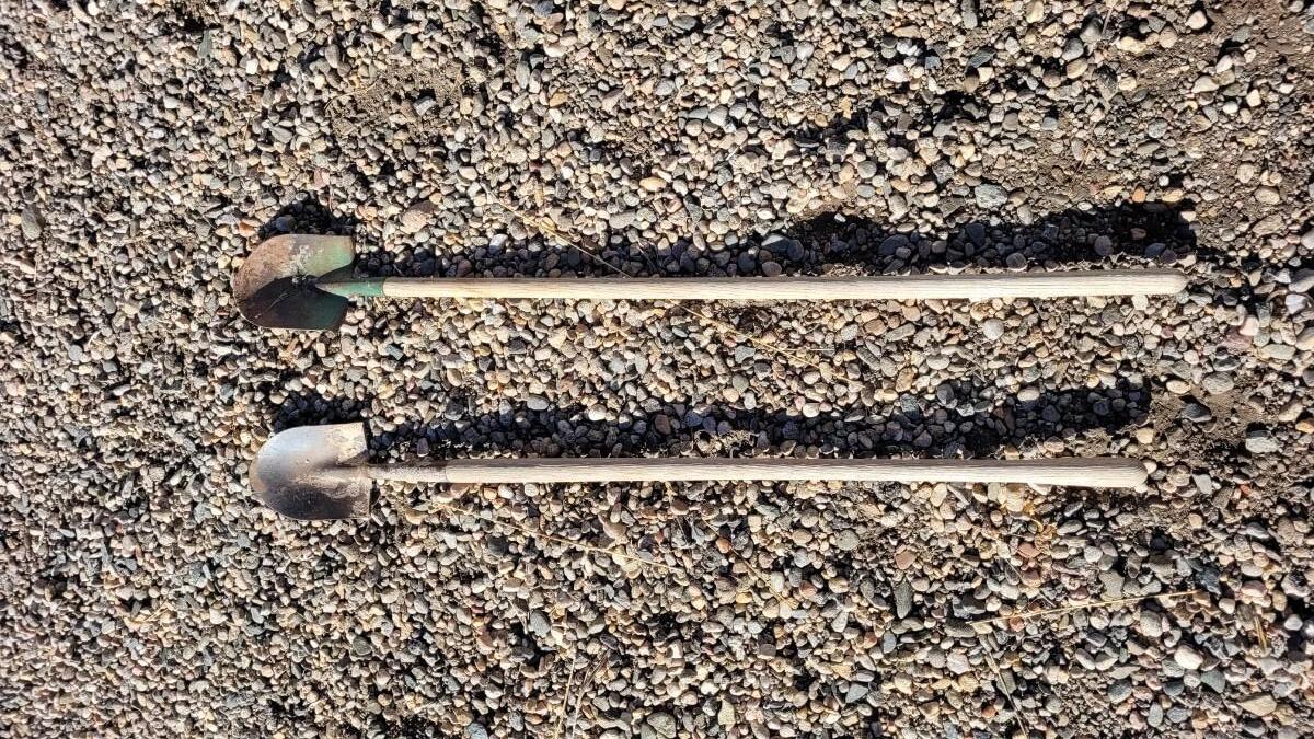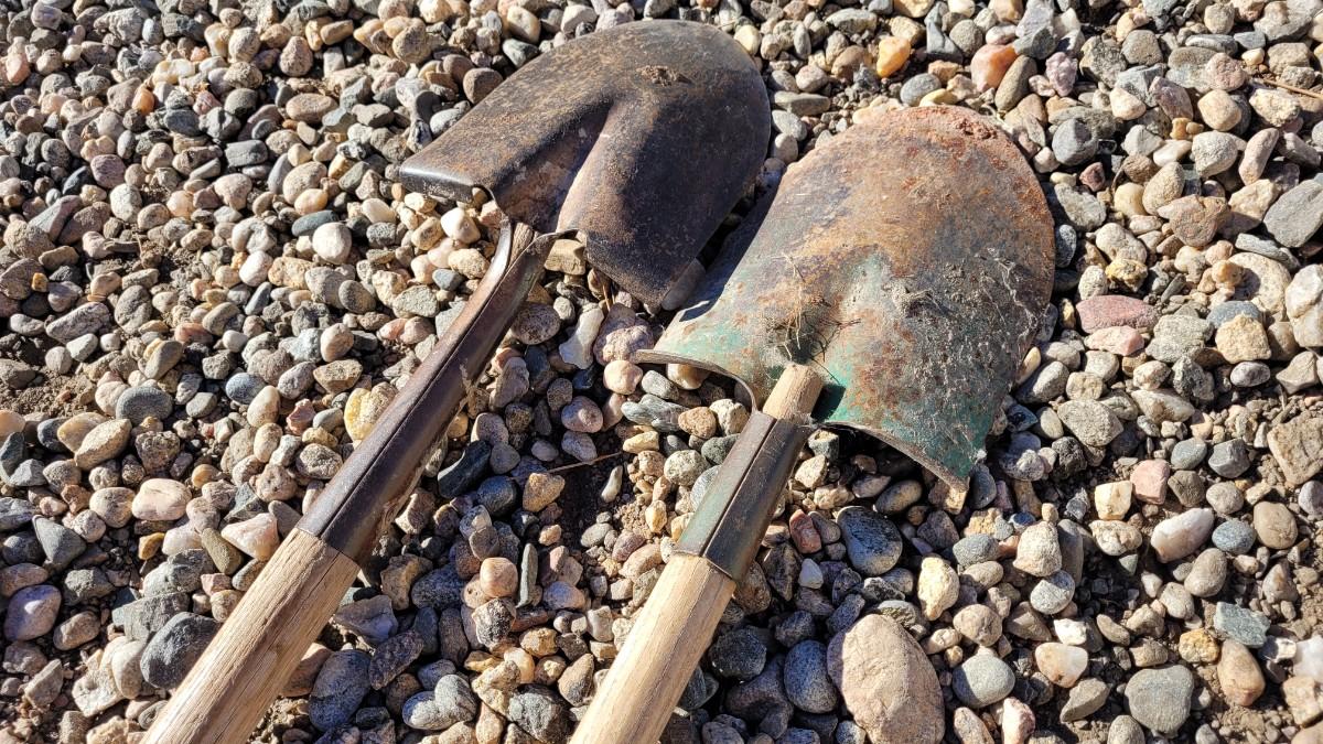 Lot 122: (2) Vintage Wood Handle Shovels feat. ONE Green Accent