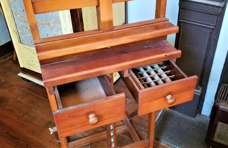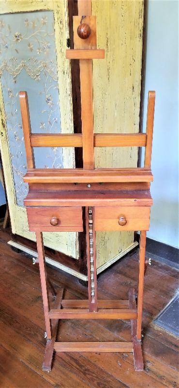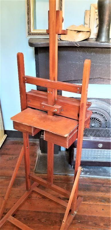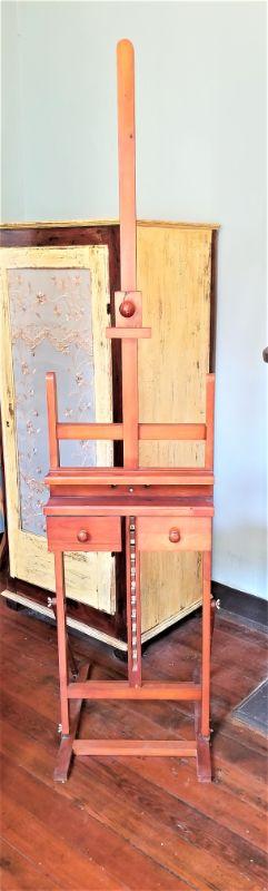 Wooden Artist's Easel - gently used. 2 drawers designed to hold paints and supplies. 18.5" across, 79" tall, 24" deep.
